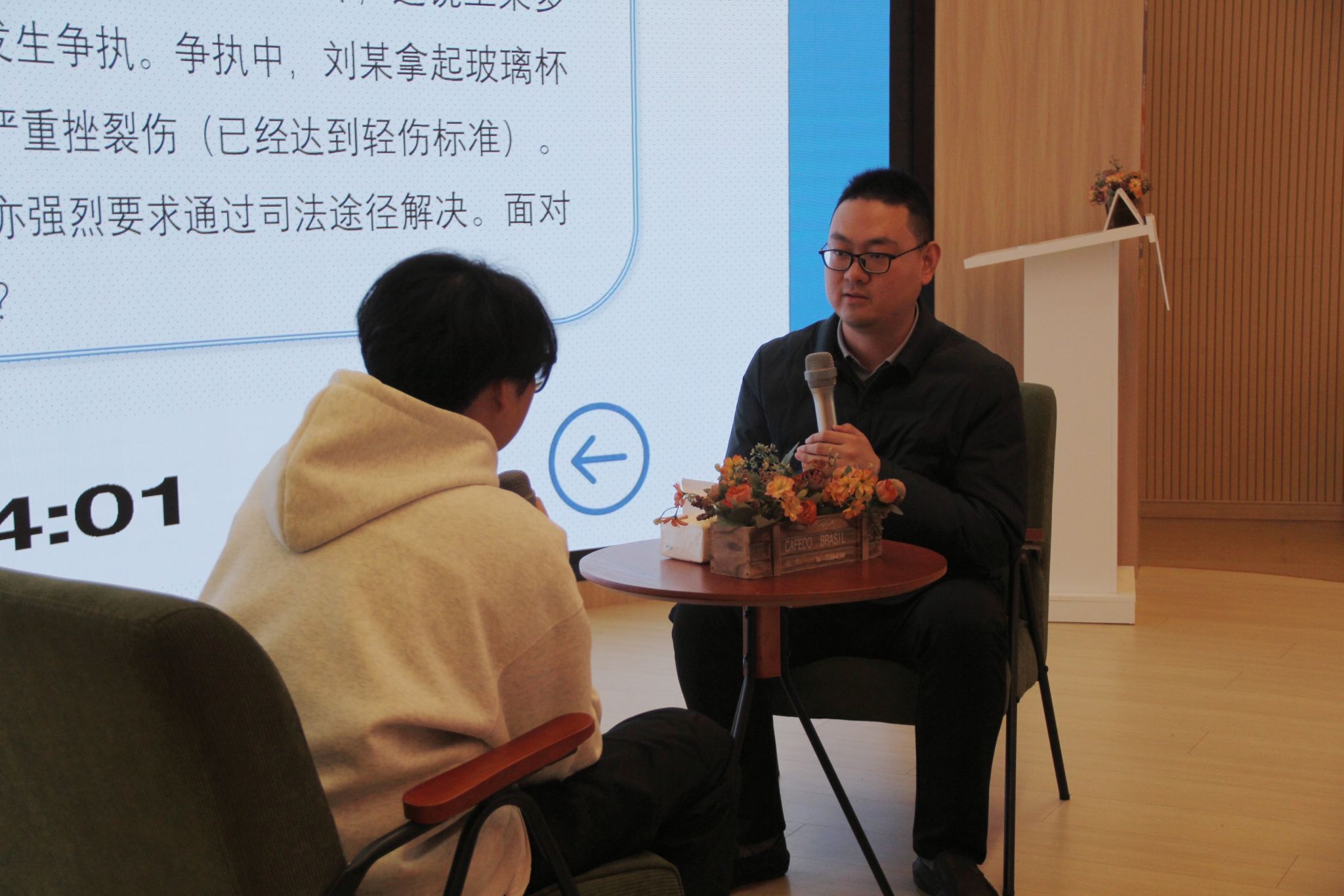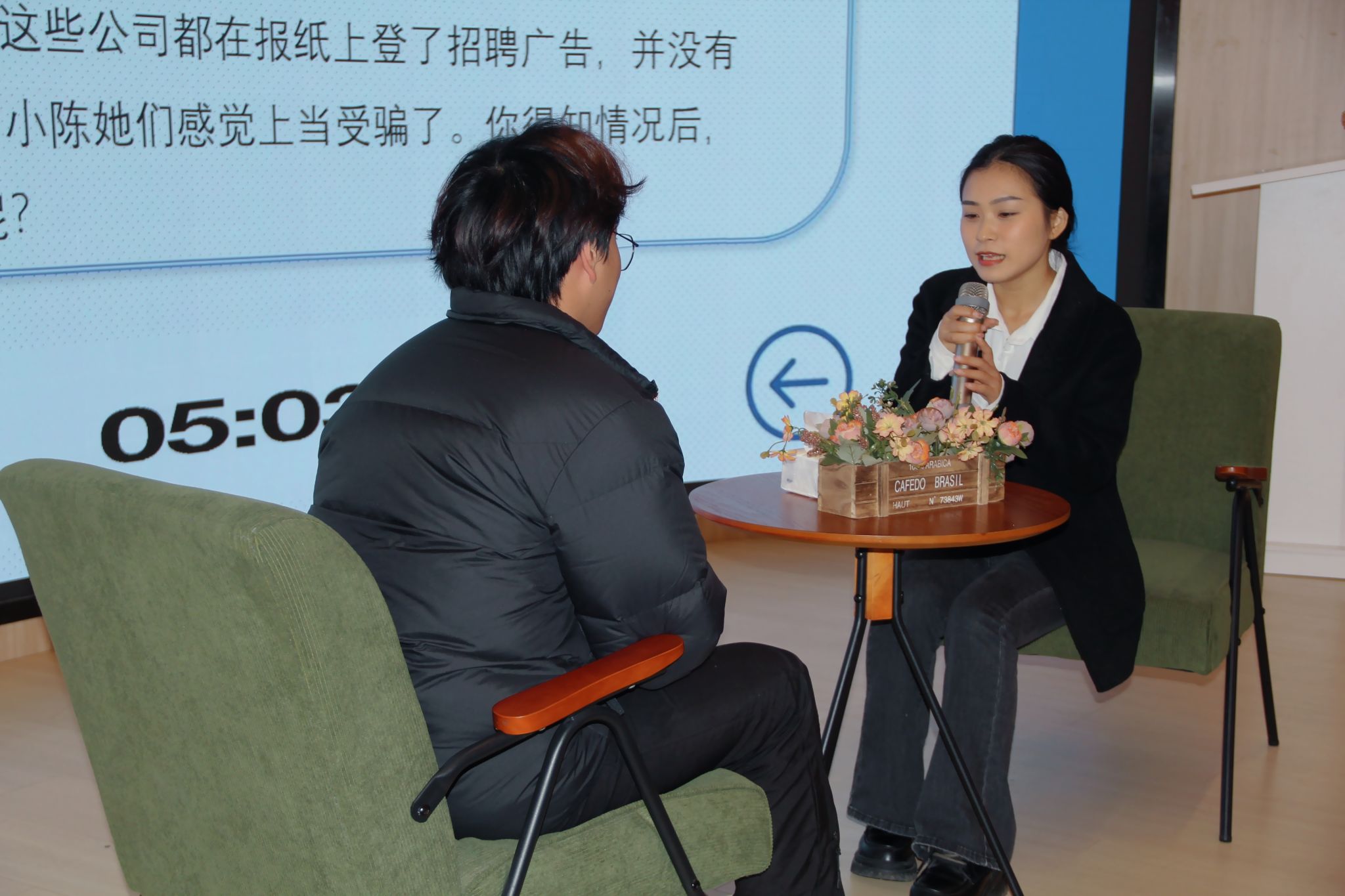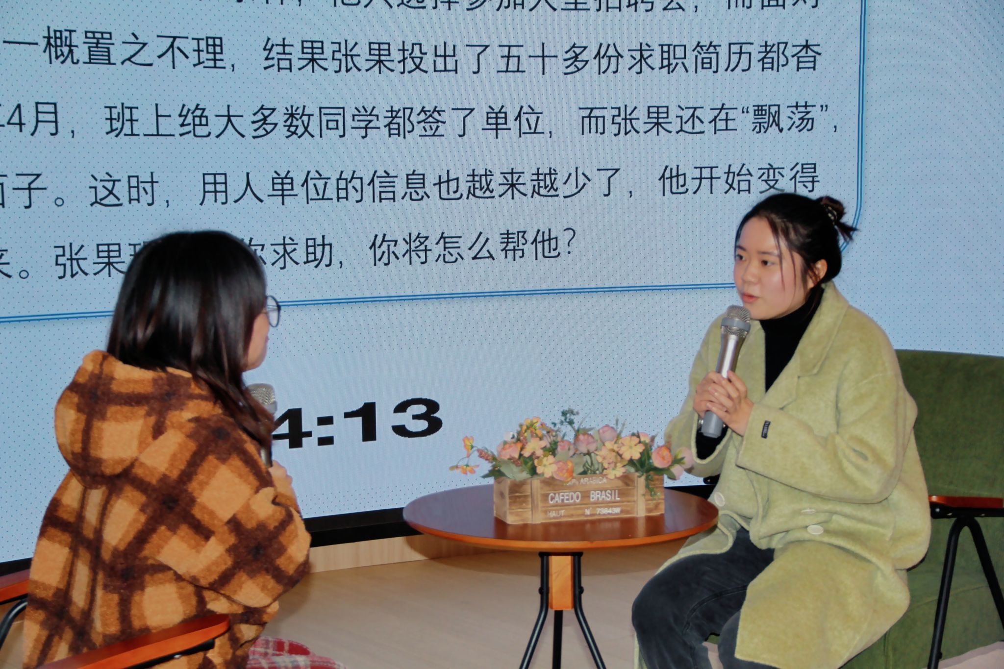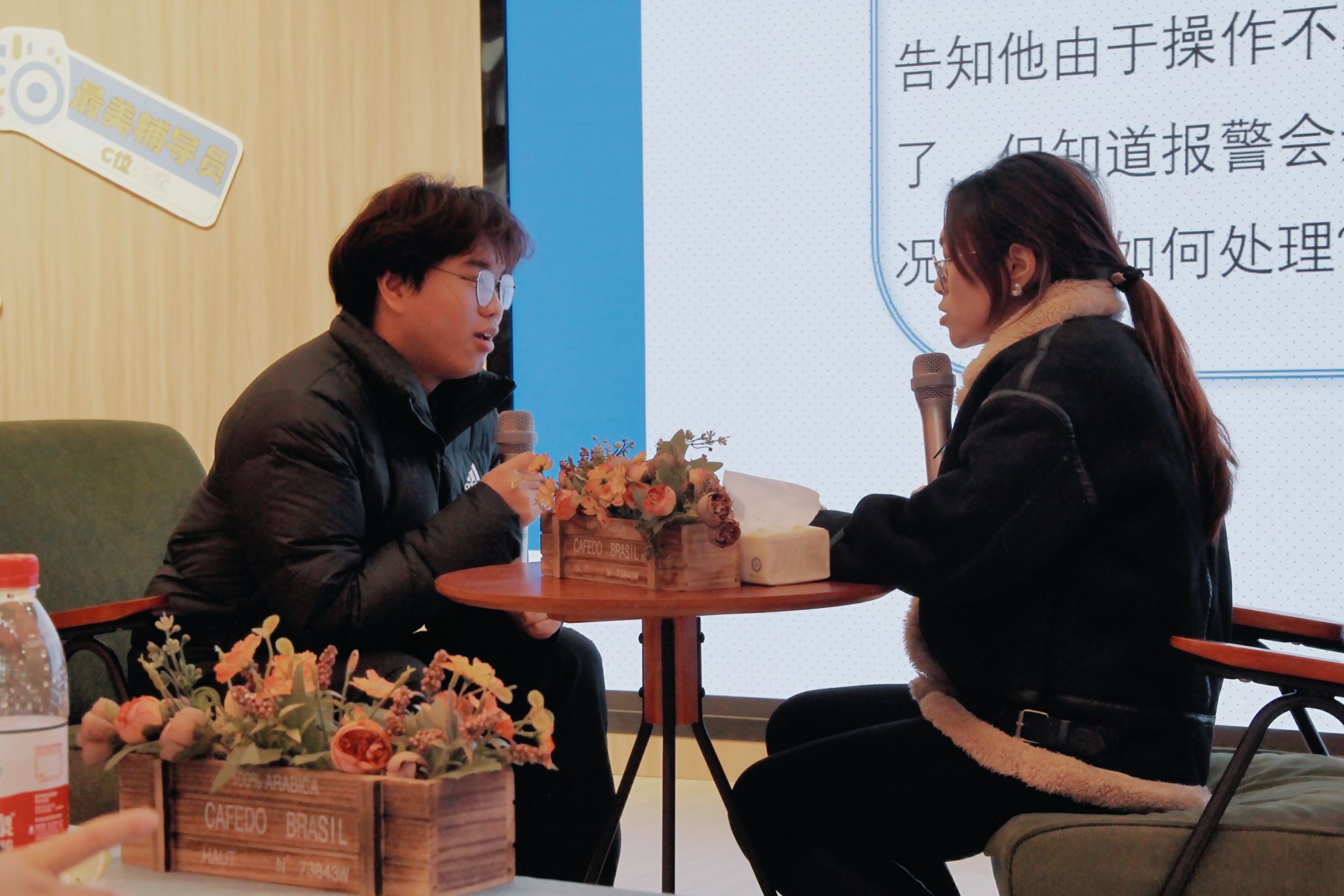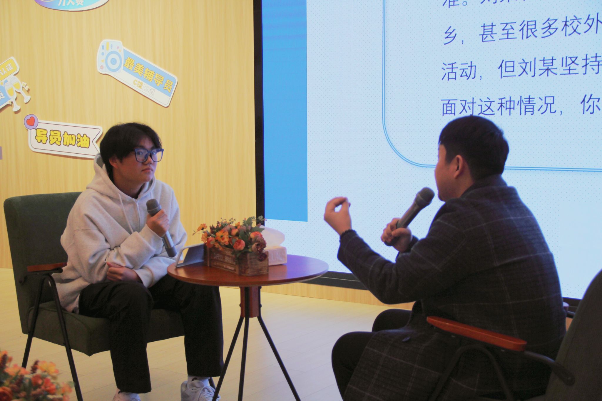 案例分析结束之后,谈心谈话环节通过情景再现的形式,由助演学生配合辅导员进行面对面的深入交流。这一独特的比赛形式,旨在深度考察辅导员对学生特征、学生成长成才规律的把握程度,以及对学生的教育引导能力、解决理论困惑和实际问题的能力等。