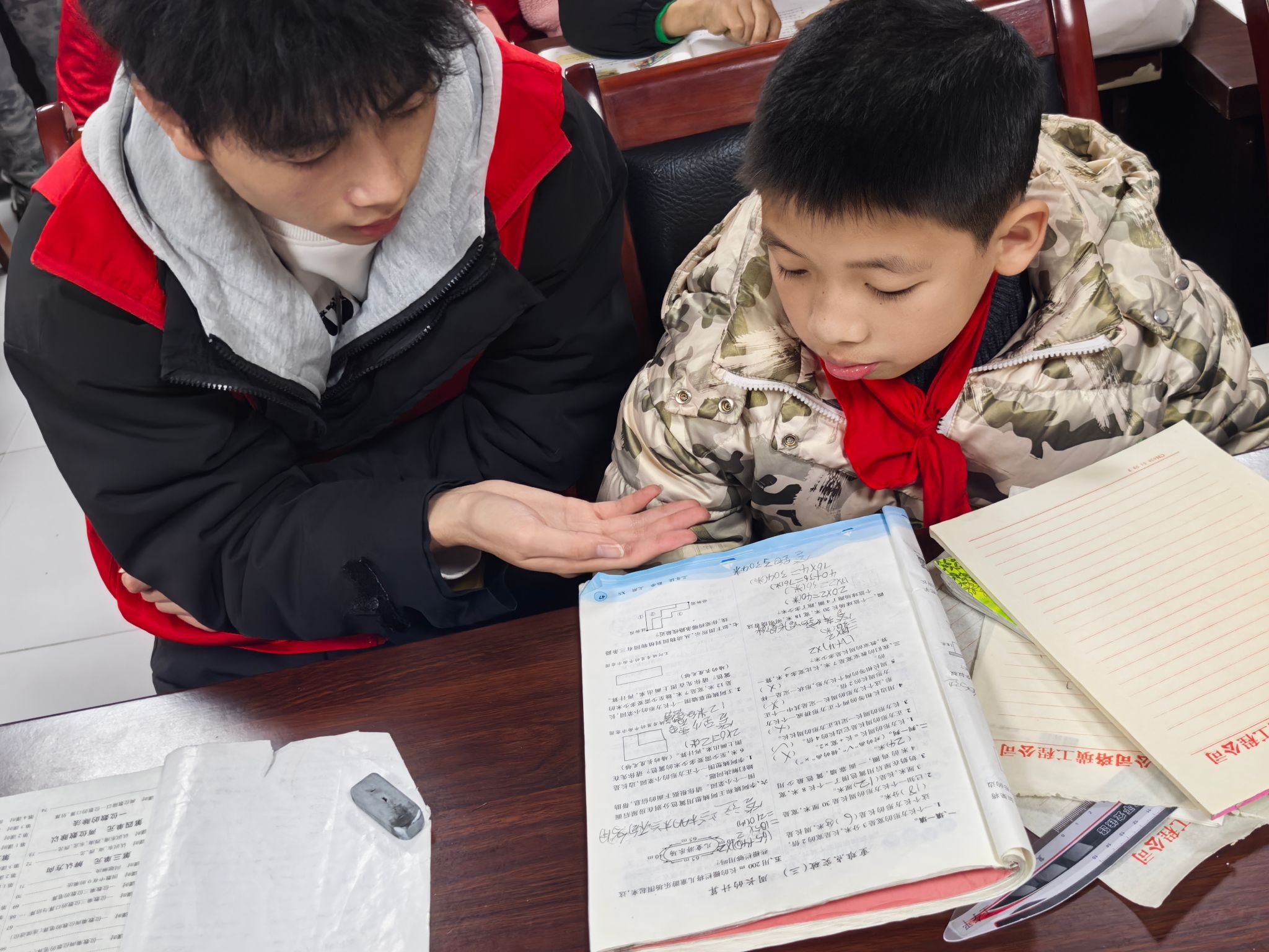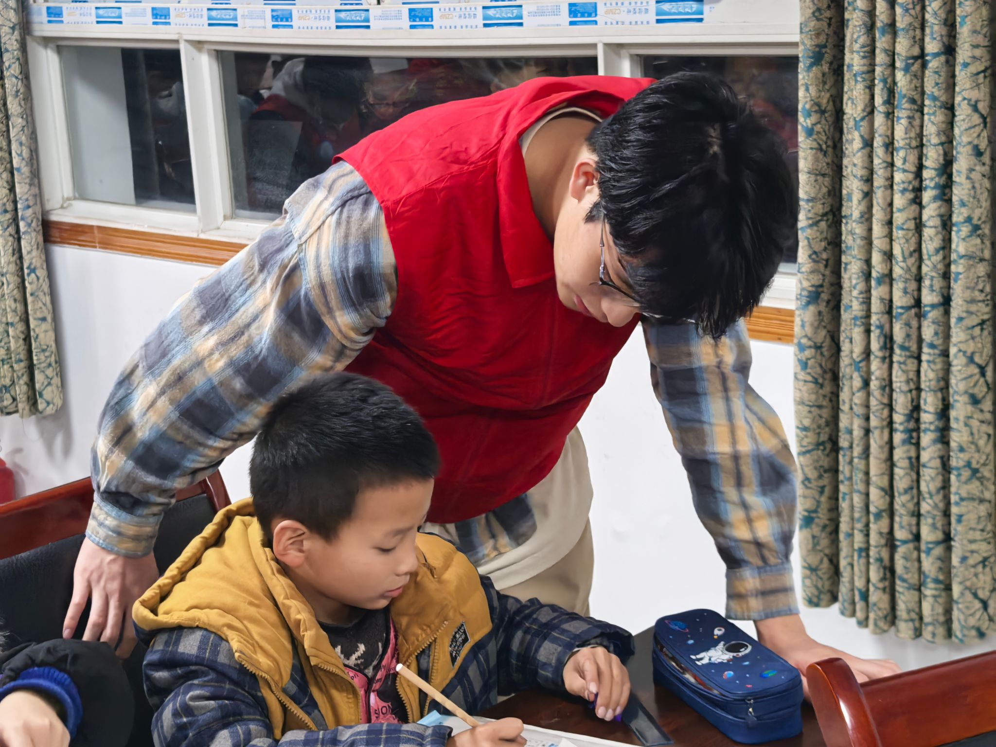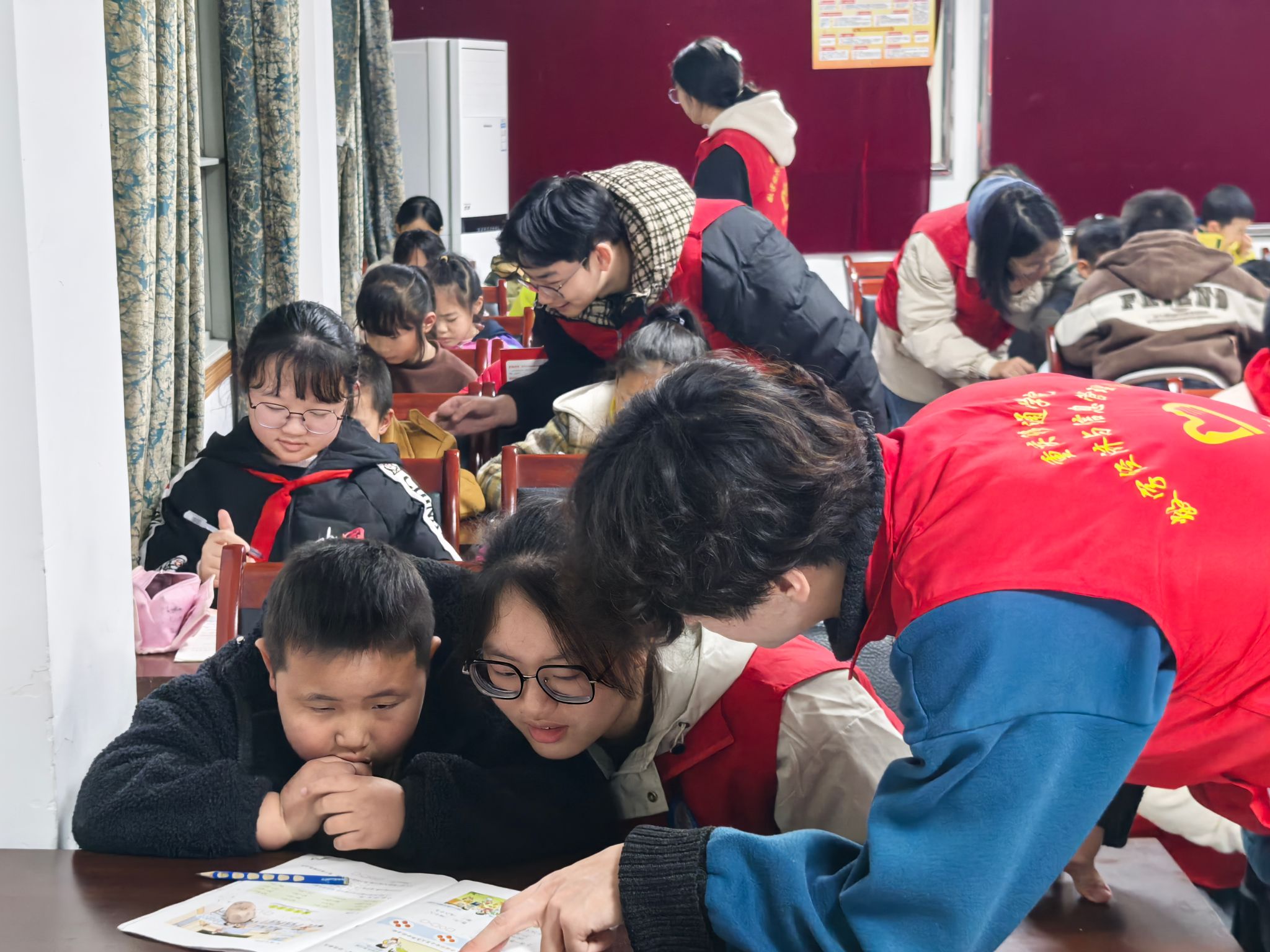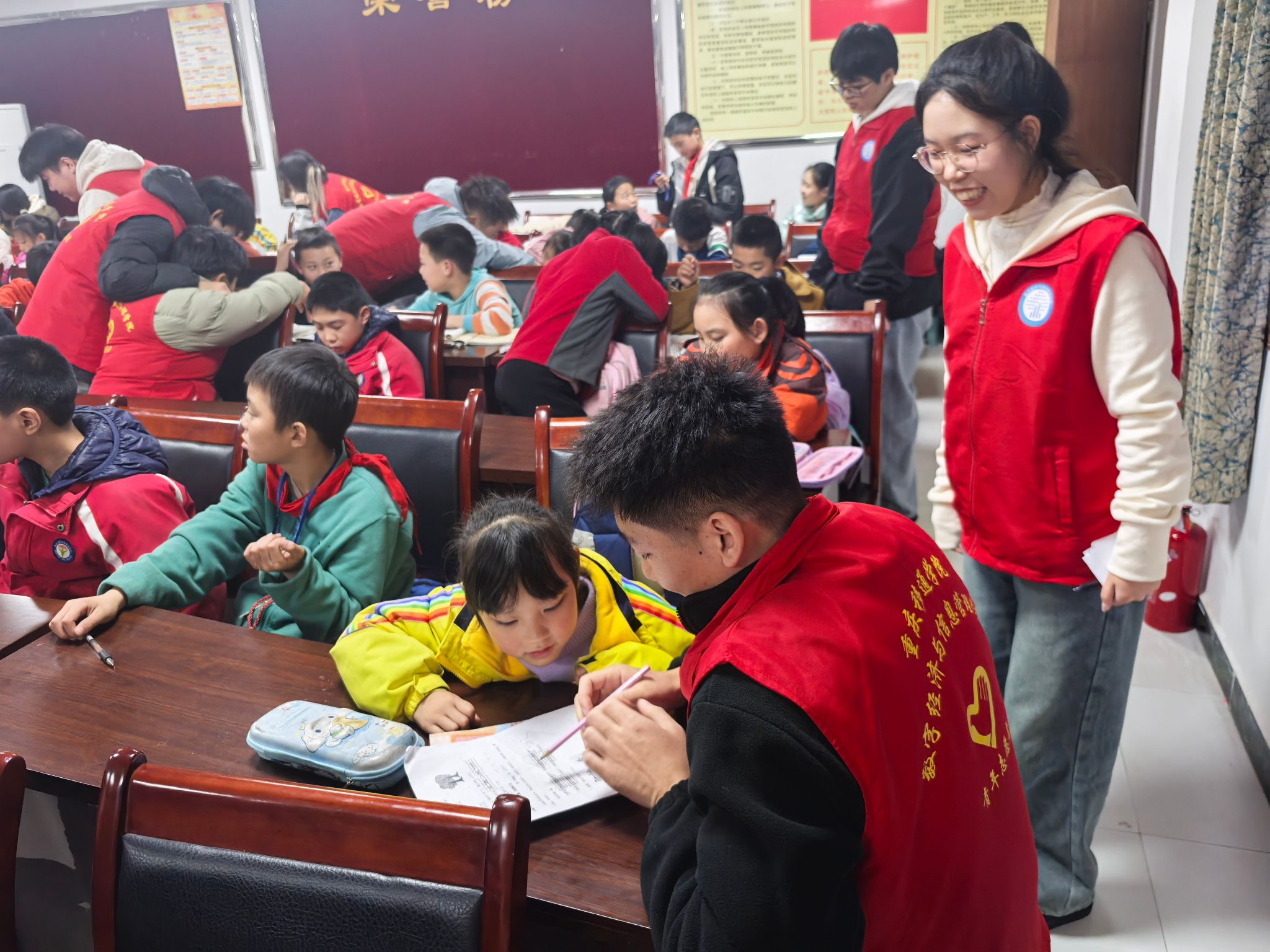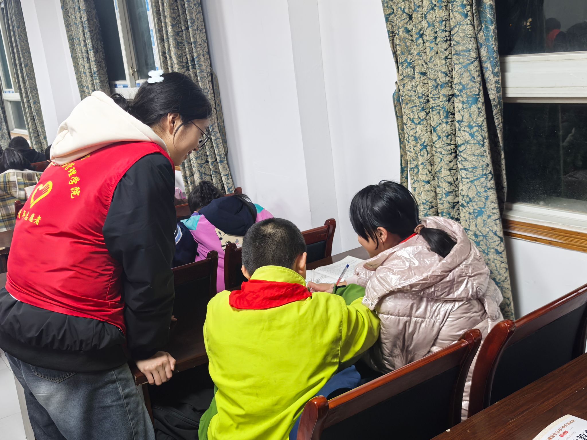 在辅导过程中,志愿者们耐心细致地解答孩子们提出的每一个问题。无论是数学的复杂运算,还是语文的阅读理解,亦或是英语的单词拼写,志愿者们都能深入浅出地讲解,让孩子们轻松理解。他们不仅帮助孩子们完成作业,还注重培养孩子们的学习方法和思维能力。例如,在数学辅导中,志愿者引导孩子们通过画图、举例等方式理解题目,让孩子们学会举一反三;在语文辅导中,志愿者鼓励孩子们多读书、多积累,提高阅读理解和写作能力。