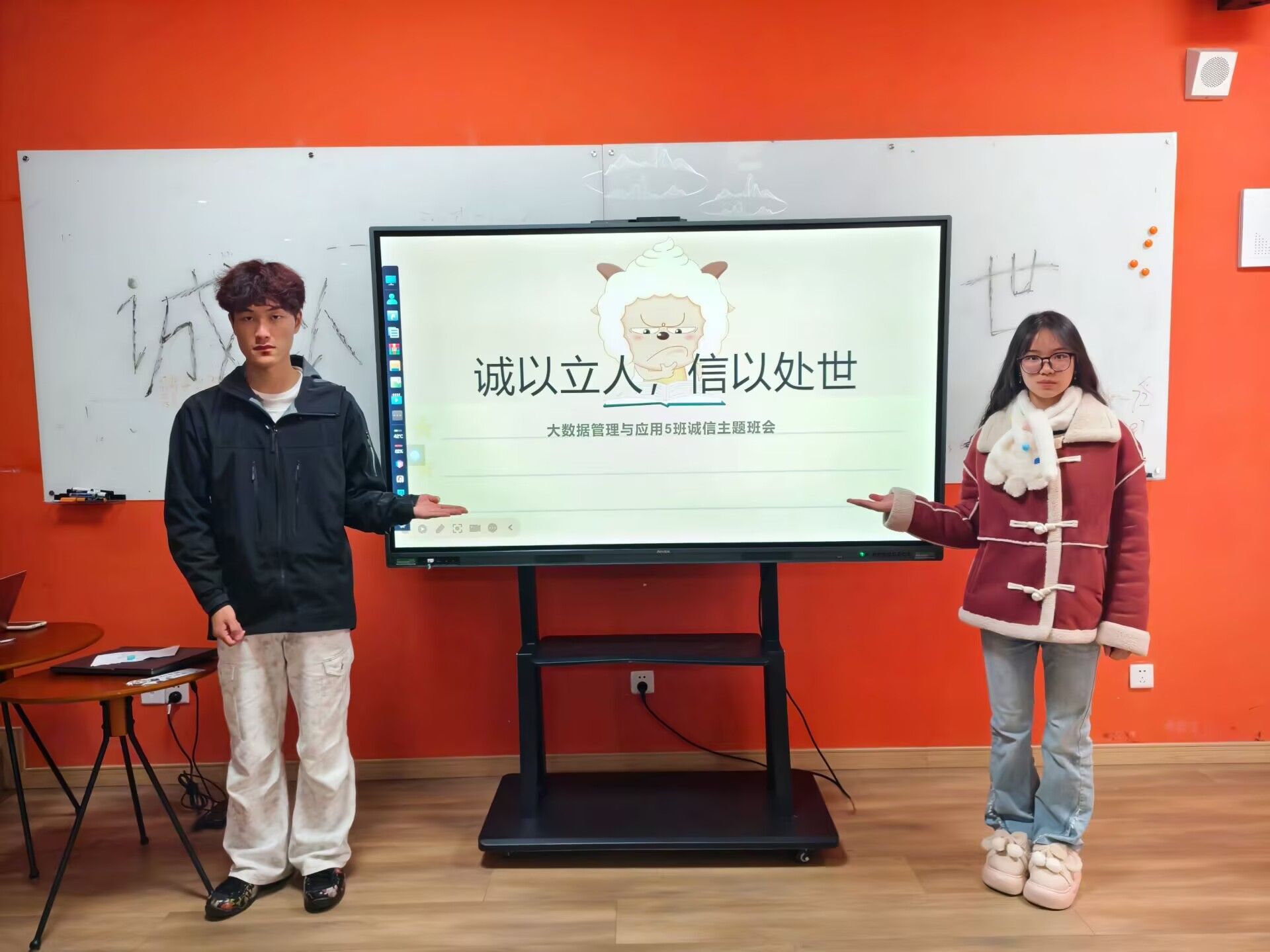 为倡导诚信考试,2024级大数据管理与应用1-5班、信息管理与信息系统1-2班积极响应12月15日即将召开的“树立诚信考风,杜绝舞弊歪风”主题年级会,建设公平公正的学风考风,同时也为提升学生道德修养,推进素质教育,促进学生全面发展,各班于11月28日至12月9日依次举办以诚信为主题的班会。