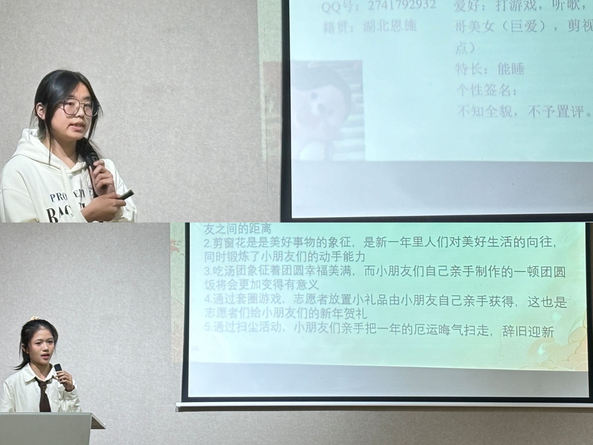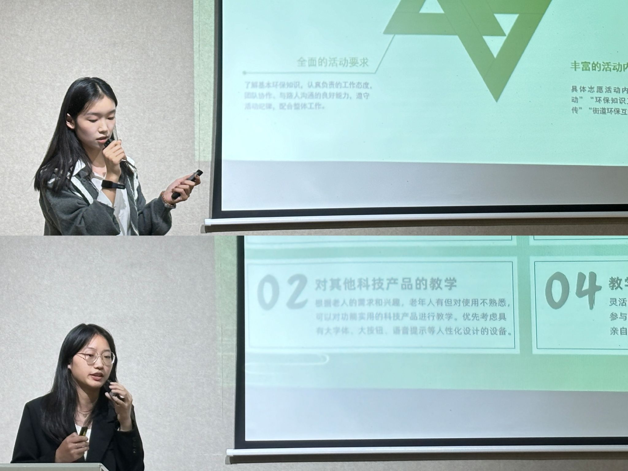 其中,许慧敏同学聚焦于社区老年人的生活需求,提出了“智慧相伴,温暖夕阳 —— 科技助老志愿服务行动”的策划,详细介绍了如何利用科技手段为老年人提供更加便捷、贴心的服务;郭满圆同学则关注环保问题,提出了“守护绿色,青春同行”的志愿服务项目,旨在通过一系列环保活动提高同学们的环保意识;赵梓涵同学则着眼于儿童性安全,提出了“守护花蕾,向阳花开”的策划,该项目致力于通过一系列细致入微的志愿服务活动,促进青少年身心健康发展,帮助他们树立正确的性观念,并有效增强自我保护能力。