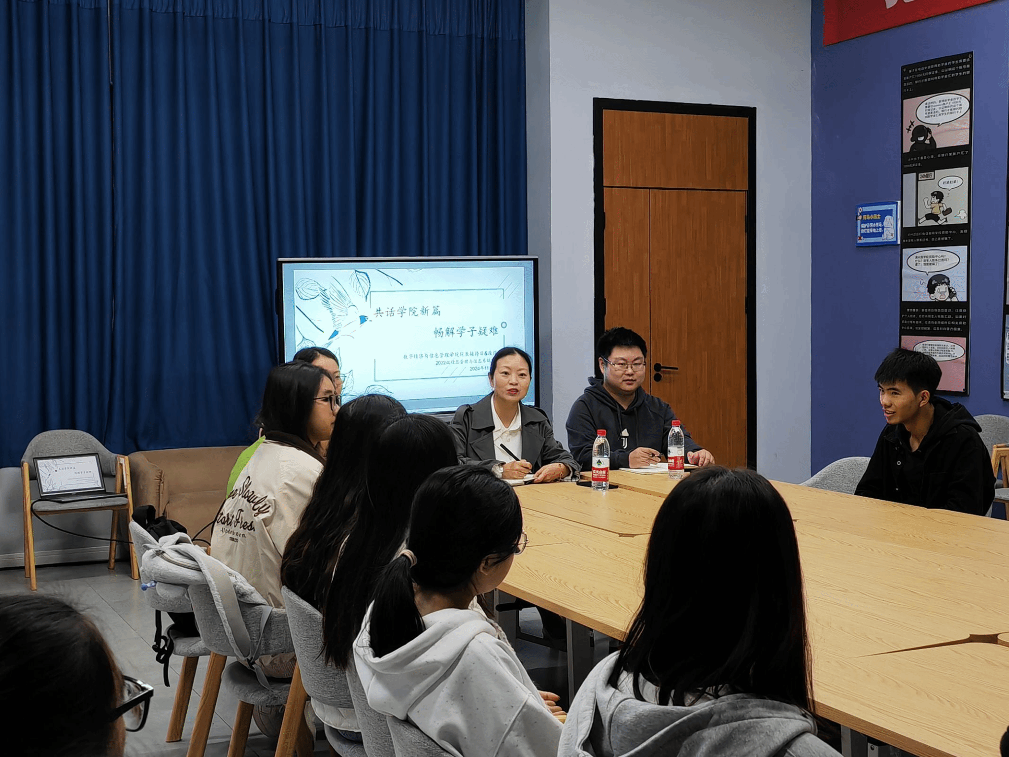 会议伊始,刘贵容院长强调学院发展离不开每位同学的支持和参与,鼓励同学们踊跃表达自己的想法。参会学生积极回应,逐一进行自我介绍,表达了自己在学业发展中的想法,并就专业前景、就业方向、就业形势、实习机会等方面提出了疑惑。刘院长与老师们认真倾听,在充分了解情况的基础上,全面、细致地回答了每位同学的提问。