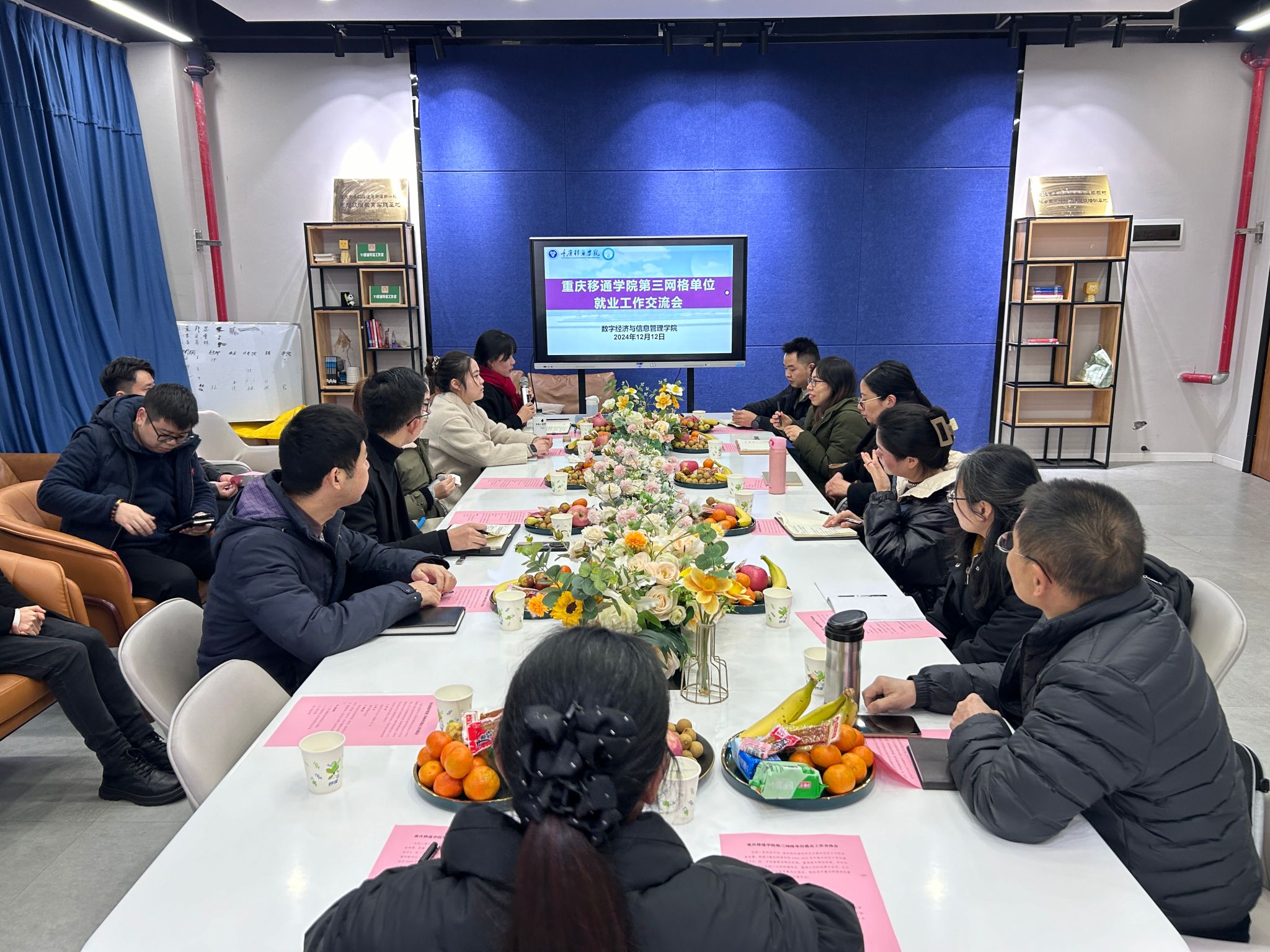 为全面落实党中央、国务院对高校毕业生就业创业工作的决策部署,根据《重庆移通学院2024-2025学年就业创业工作实施意见》,进一步精准落实帮扶政策,同时加强网格单位各部门与学院辅导员、教师之间的沟通与合作,全力促进2025届毕业生高质量充分就业。重庆移通学院綦江校区第三网格单位就业工作交流会于12月12日14:30在綦河书院励行会客厅顺利开展。