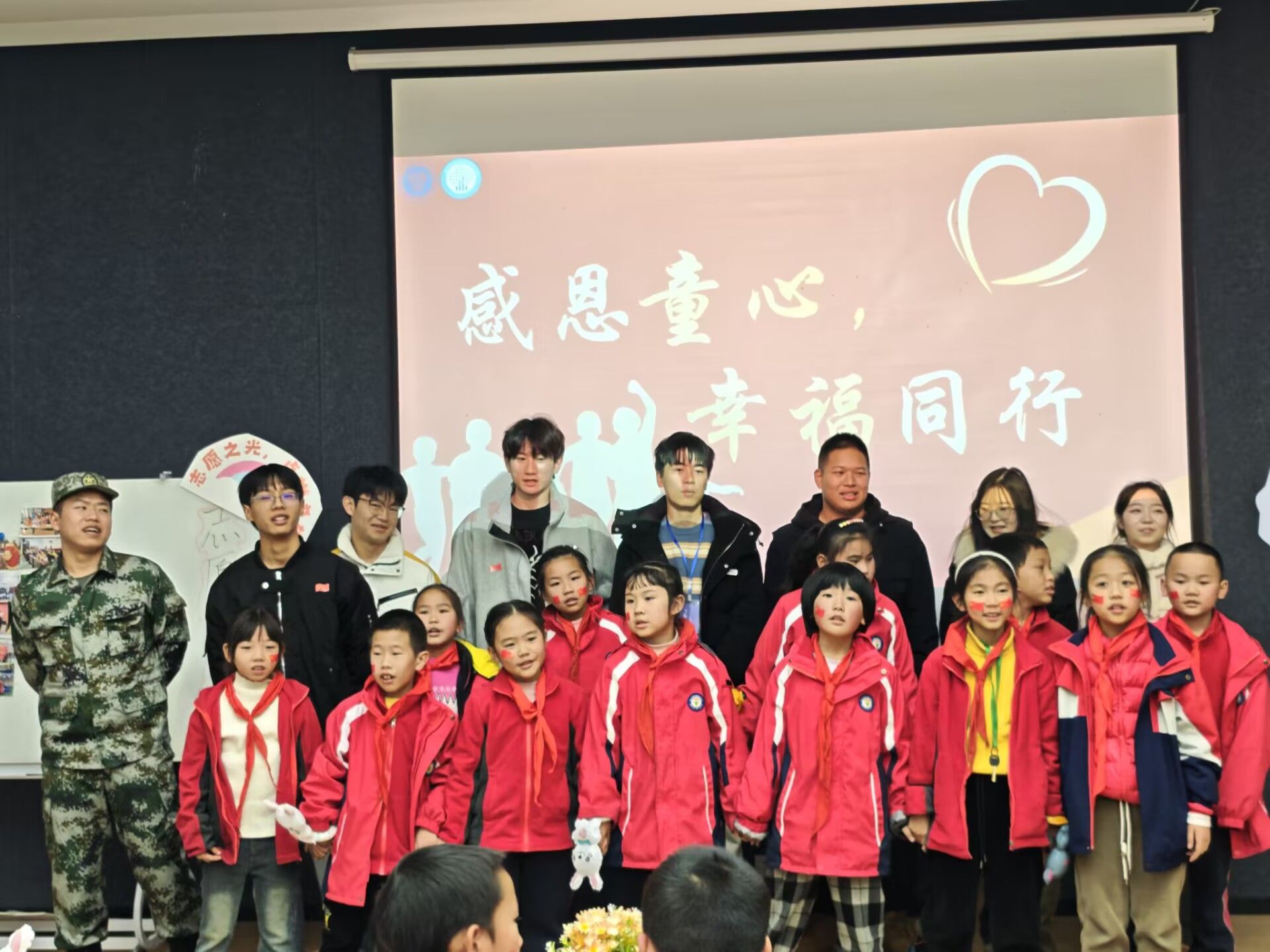 接着党支部党员们与小朋友们一起共唱《感恩的心》,用歌声感怀祖国。激昂的歌声在教室上空回荡,唱出了对党和祖国的无限热爱与深情祝福。此刻,大家不仅是在歌唱,更是在传承。他们用实际行动,将红色精神融入日常工作与生活,在各自的岗位上拼搏奋斗,为祖国的发展添砖加瓦,让红色血脉得以绵延不息。