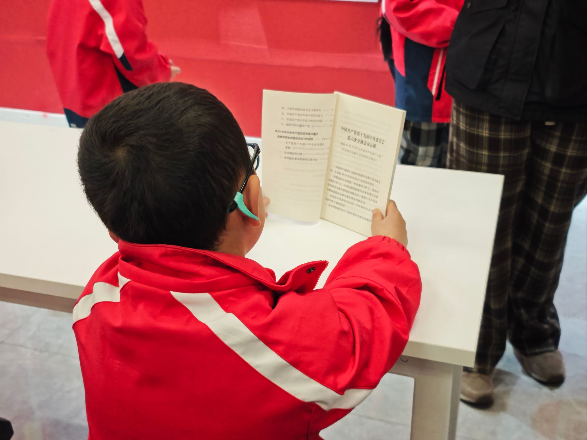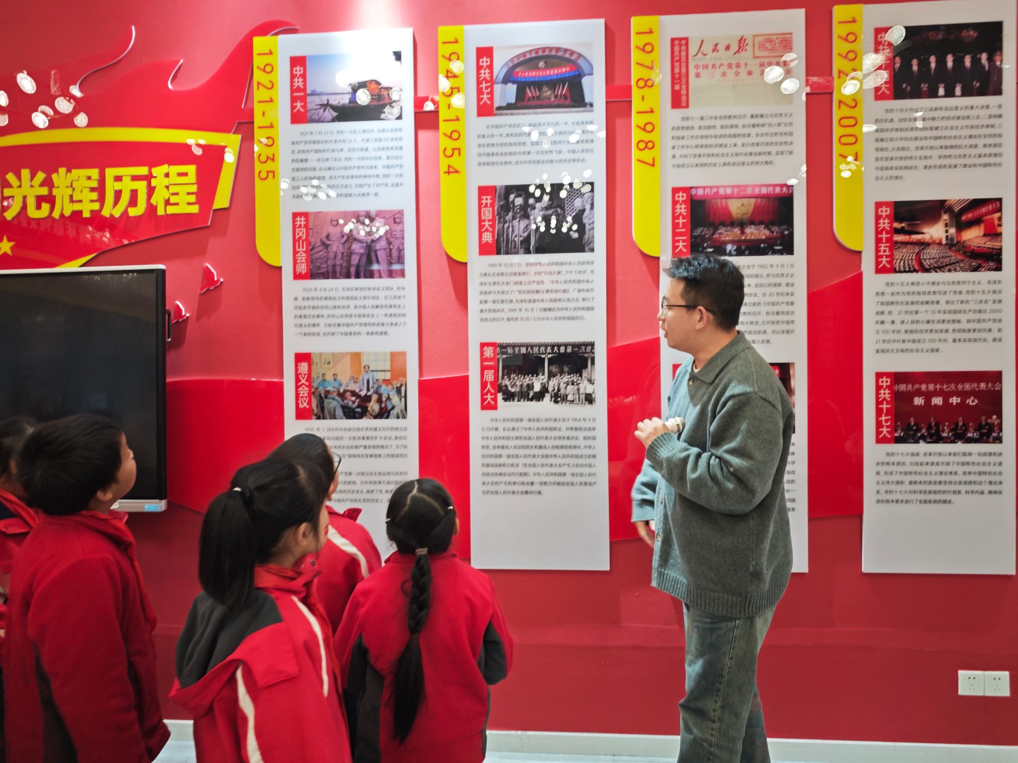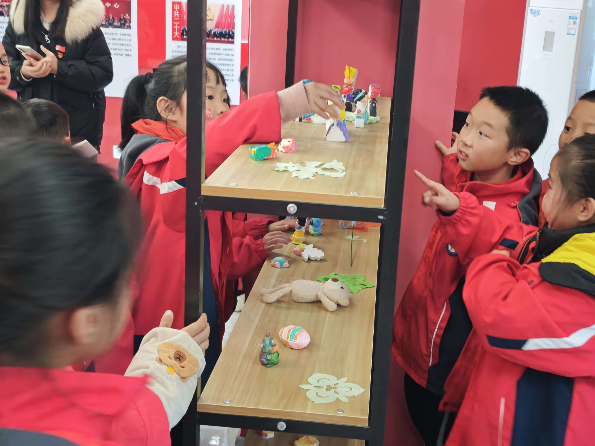 最后,白老师带领小朋友们参观活动室里的陈列品。从早期的革命文物到新时代的党团建设成果展示,小朋友们穿梭其中,不时发出惊叹声。一幅幅泛黄的照片、一份份珍贵的文件,都让小朋友们感受到了党团组织一路走来的艰辛与荣耀。在这个过程中,党团的精神,无声地滋润着孩子们幼小的心灵,在他们心中种下了红色的种子,等待着在未来生根发芽、茁壮成长,成为传承党团精神的新生力量,让红色基因代代相传,永不褪色。