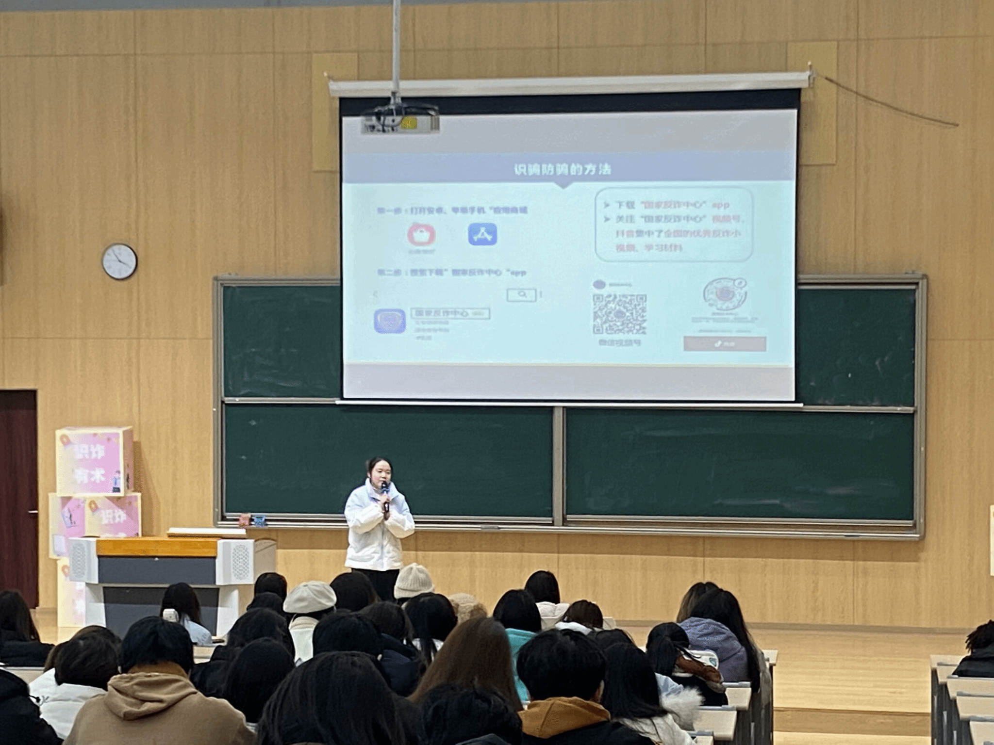 周老师为我们展示了常见的诈骗手段,如网络诈骗、电话诈骗、金融诈骗等典型案例及应对方法。同时结合实际发生的诈骗案件,深入剖析诈骗分子的作案手法和特点,提醒同学们在日常生活中要时刻保持警惕,不轻易相信陌生人的信息和要求,尤其是涉及到资金转账等重要事项时,一定要多核实、多确认。