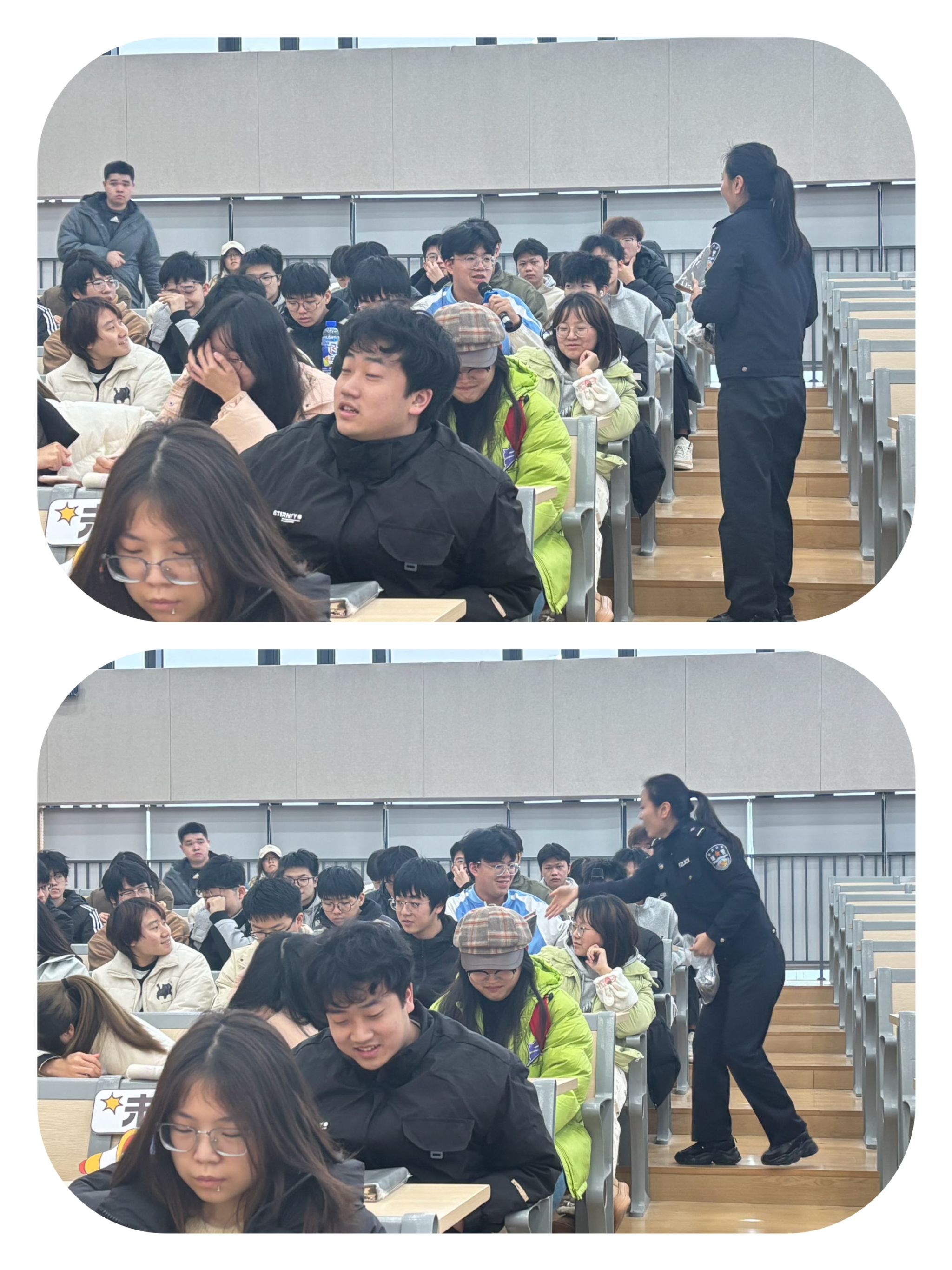 在与周老师的交流互动中,同学们积极回答周老师提出的问题。同学们踊跃举手,眼神坚定,先核实信息源,绝不能随意点击链接,等一系列答案脱口而出。现场气氛热烈,同学们情绪不断高涨。通过这场讲座,反诈意识已经深深扎根于每位同学心间,为进一步构建安全校园打下了基础。
