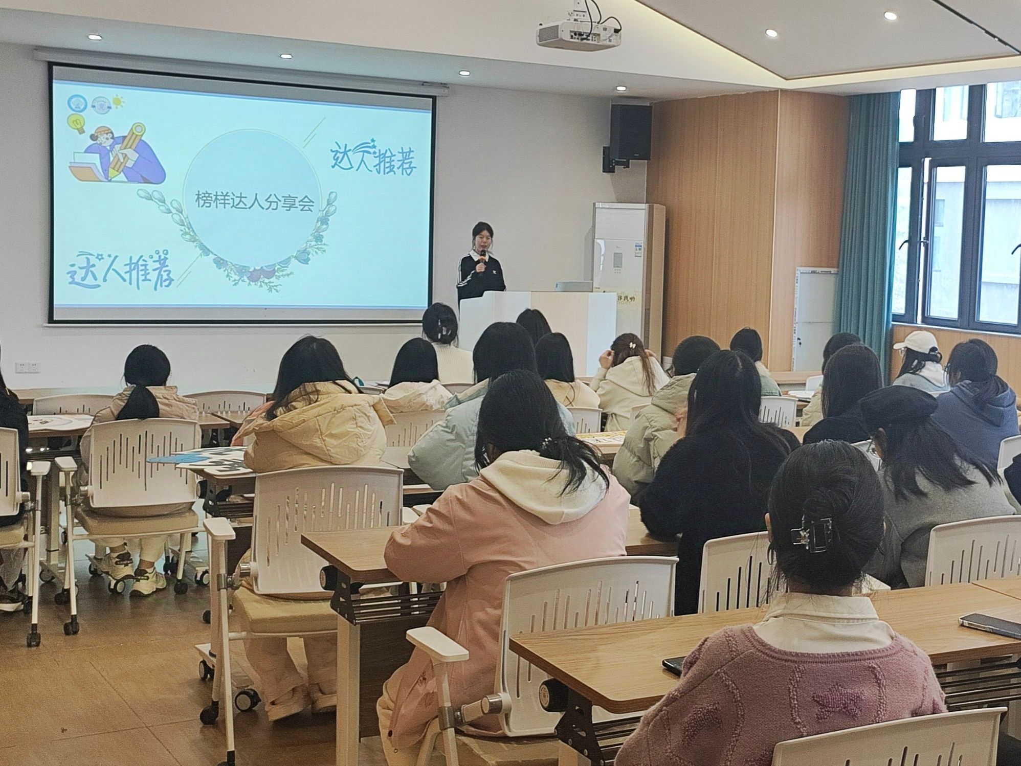 活动现场气氛热烈非凡。此次,我们有幸邀请到了杰出的榜样达人 —— 洪月颖学姐。在榜样达人分享会上,洪月颖学姐走上讲台,她的每一个步伐都充满自信。她向我们分享了在社团管理中心的经历,在组织活动过程中的点点滴滴,从最初的策划构思,到活动过程中的协调与沟通,再到最后看到活动圆满成功时的喜悦。三年成长之旅让她学会了如何有效地组织和策划活动,更让她懂得了责任与担当的重要性。有效地向同学们传授了活动怎么做以及如何尝试社交方面的经验。 “为热爱我全力以赴”,每一次活动都是一次挑战,正是这些挑战让她不断成长,在成长的道路上不断前行、不断探索、不断超越自我。她的分享让大家明白,成功不是偶然的,而是需要付出无数的汗水和努力。这些宝贵的经历为同学们提供了极佳的参考,让同学们逐渐找到了方向,确立了属于自己的目标。