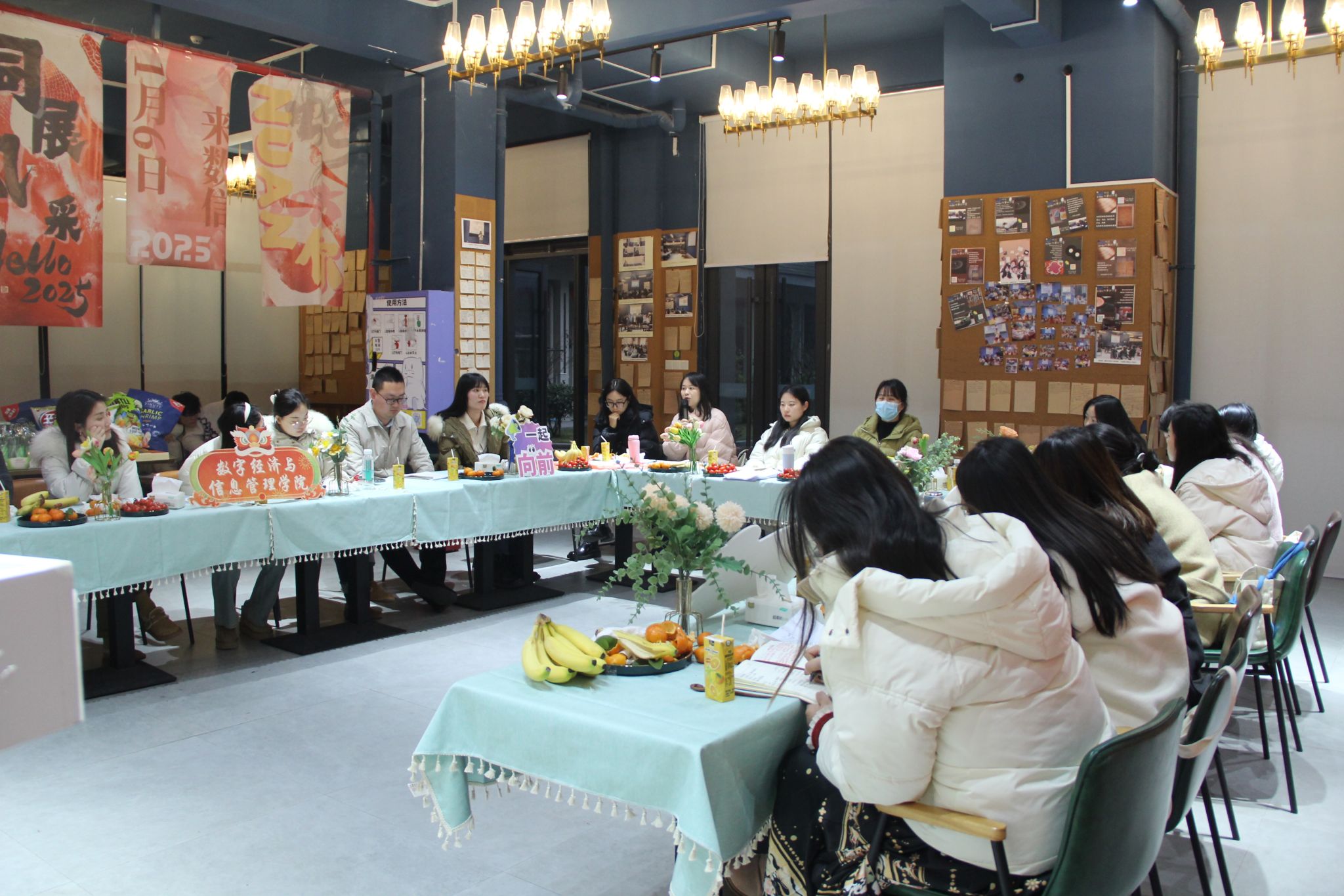 为切实解决大学生就业难题,助力学子顺利迈向职场为,多措并举提升毕业生就业率。2025年1月6日,数字经济与信息管理学院于綦河书院东篱·故事茶馆开展了2025年毕业生就业专题研讨会。会议由学工副院长任瑞娟主持,学院双校区辅导员参加。