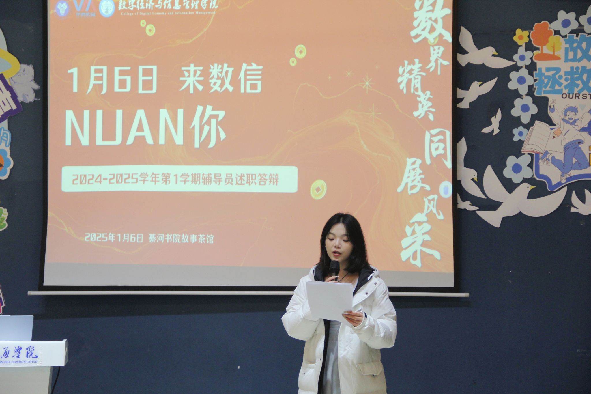 为落实立德树人根本任务,持续推进辅导员队伍的职业化、专业化和专家化建设,系统构建全员全过程全方位育人新格局。2025年1月6日,数字经济与信息管理学院在綦河书院东篱·故事茶馆开展了2024-2025学年第一学期辅导员工作述职汇报。此次述职大会旨在全面总结过去一学年辅导员工作的成果与经验,为新学年学生工作的优化提升奠定基础。大会由学生干部敬欣主持,数信学院学工副院长任瑞娟、合川校区全体辅导员老师出席,綦江校区全体辅导员参加并汇报。