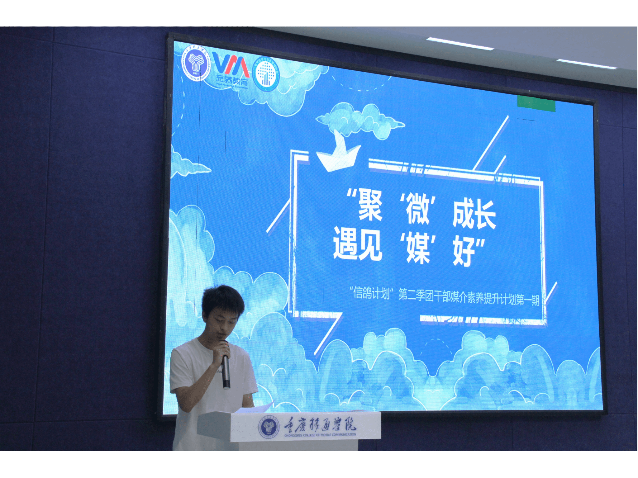 为提升学院宣传工作的质量,提高学生干部新闻写作水平,10月9日19:00,数字经济与信息管理学院在綦河书院二号楼观涛多功能报告厅成功举办了“聚‘微’成长,遇见‘媒’好——‘信鸽计划’第二季第一期”新闻稿写作培训,本次培训邀请了校团委学生副书记卢彬主讲,媒体运营部石烨同学主持,数信学院宣传板块指导老师张倩,学院团总支学生会干部干事参加。
