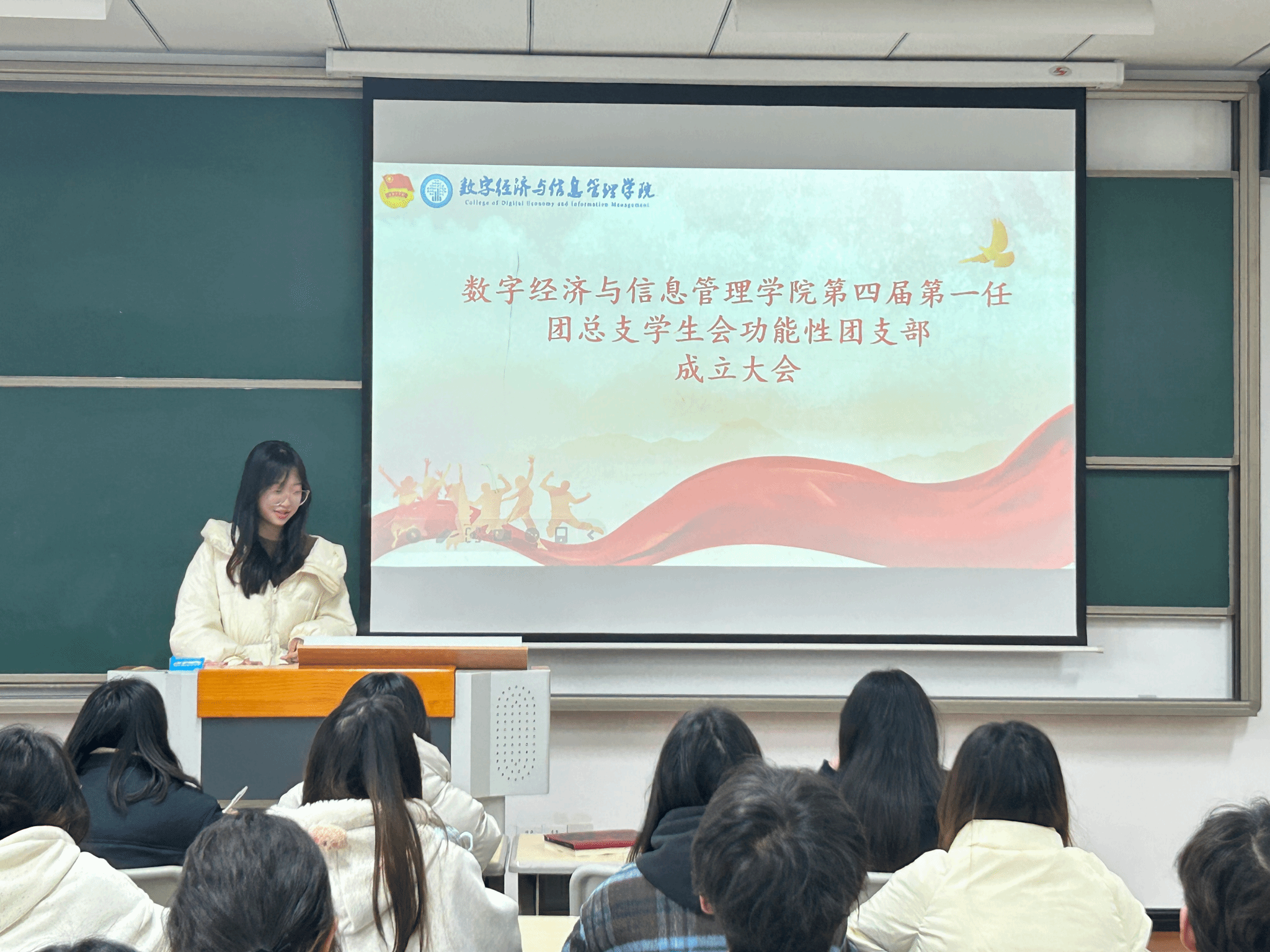 在新时代的浪潮中,数字经济与信息管理学院紧跟时代步伐,为进一步加强学院团总支学生会全体成员的归属感与认同感,致力于培养具有创新精神和实践能力的高素质人才,积极推动组织建设,加强思想引领,数字经济与信息管理学院学生会于2024年10月16日隆重举行了功能性团支部成立大会。此次大会旨在深入贯彻落实习近平总书记关于共青团在高校学生思想政治工作中发挥主力军作用的重要要求,深化共青团改革,全面从严治团,进一步加强全校共青团基层组织建设和延伸。
