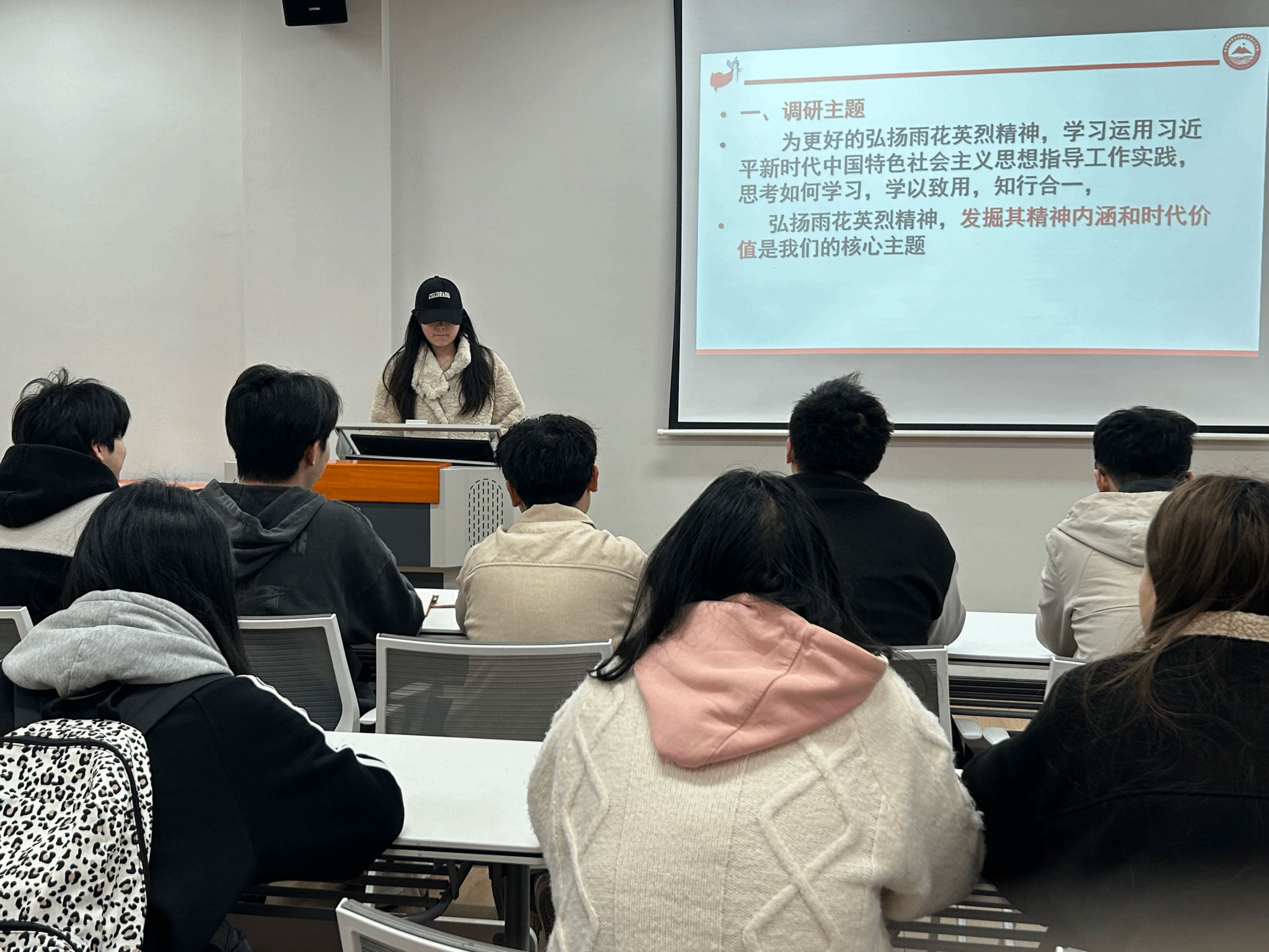 活动伊始,唐容容点明本次学习的核心主题:弘扬雨花英烈精神,探索如何将理论学习与实践相结合,做到学以致用、知行合一。她说到,南京作为“红色之城”,拥有丰富的红色资源,传承红色基因是当代学生干部义不容辞的责任。