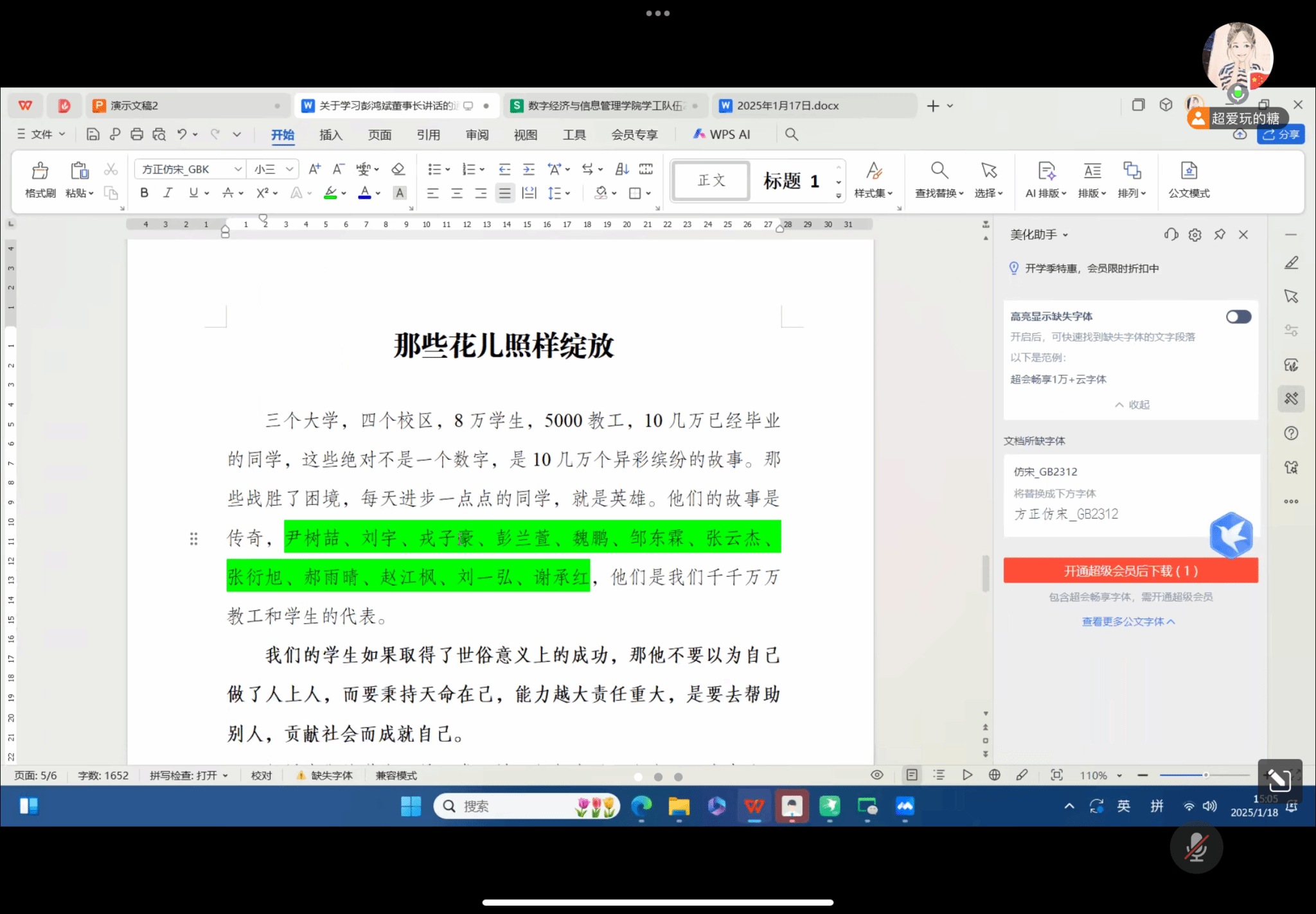 在深入学习彭鸿斌董事长《天涯龙门阵,鲤鱼跃龙门》和《那些花儿照样绽放》讲话内容后,我深刻体悟到其中蕴含的教育哲理,犹如明灯照亮了我作为完满教育工作者及高校一线辅导员的前行之路。我们的角色,远远超越了单纯关注学生学业成就与职业规划的范畴,而是成为他们内心火焰的点燃者,激发他们的兴趣火花,引导他们勇敢地追寻个人梦想。在这浩瀚无垠的宇宙间,我们虽渺小如尘埃,出身或许平凡,但正是这无数平凡之中,孕育着不凡的可能。生活,绝非仅限于眼前的苟且与妥协,它更包含了对美好未来的无限憧憬——那是诗意的栖居,是远方的呼唤。我们有责任通过通识教育的滋养与完满活动的搭建,为学生们的精神世界添砖加瓦,使他们的生活更加丰富多彩,让他们懂得:生命虽无法度量其长度,却能通过拓宽其广度与深度,赋予其非凡的意义。在人生的旅途中,每一步选择都蕴含着价值,只要追随内心的指引,每条道路都能通向心灵的归宿。每位学生都是独一无二的个体,拥有属于自己的故事与价值。无论他们未来的足迹落在何方,都有能力在自己的领域里熠熠生辉,绽放独一无二的光芒。未来,我将继续努力,为学生们的诗和远方做准备,鼓励他们在人生的征途上勇往直前,不断绽放自我,闪耀光彩。