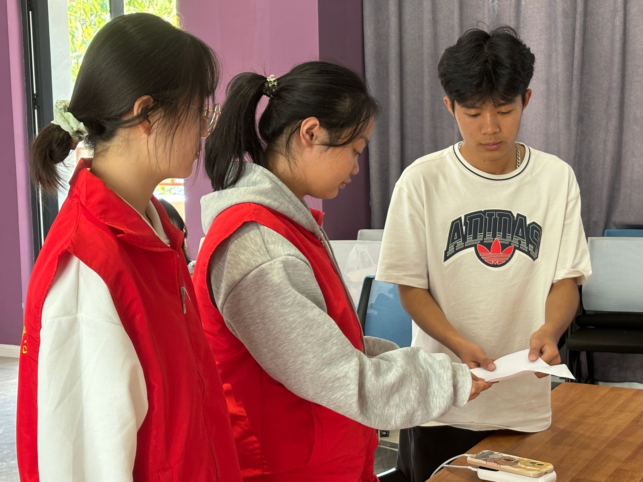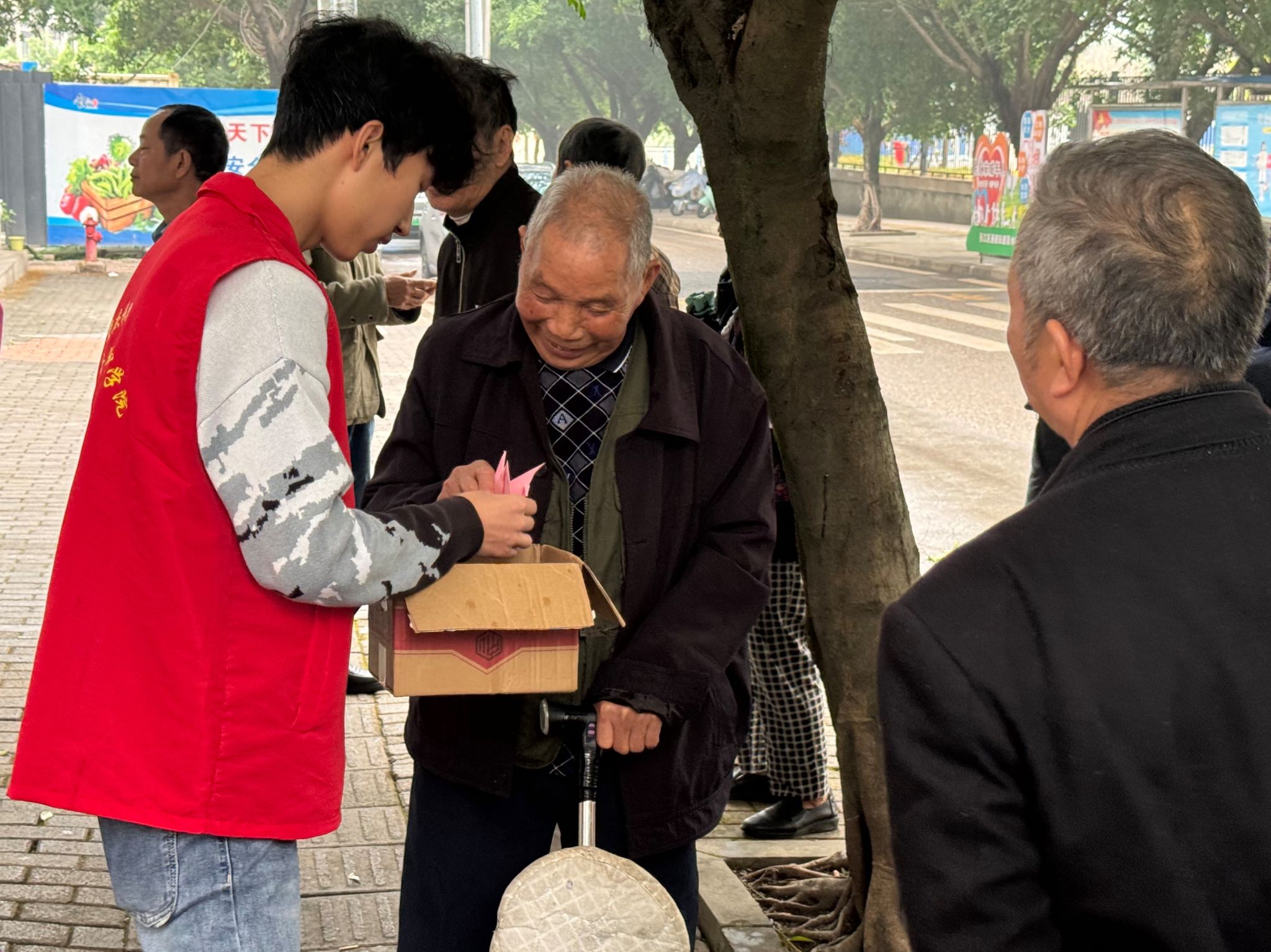 重阳节来临之际,数字经济与信息管理学院青年志愿者协会于10月11日上午10点至12点前往浸水社区开展了“重阳情深·手工传心”重阳节主题活动。活动前期,志愿者们线下收集同学们精心制作的手工作品以及贺卡共300份左右,每一件都诚意满满。到达社区后,志愿者们将这些承载着同学们爱意的手工品转交给老人们,老人们脸上洋溢着幸福的笑容。同时,志愿者们还为老人们表演了精彩的节目,现场气氛温馨而热烈。这个重阳,数信学子们用实际行动传递关爱,弘扬敬老传统美德,共同为老人们营造一个温暖、幸福的节日氛围。
