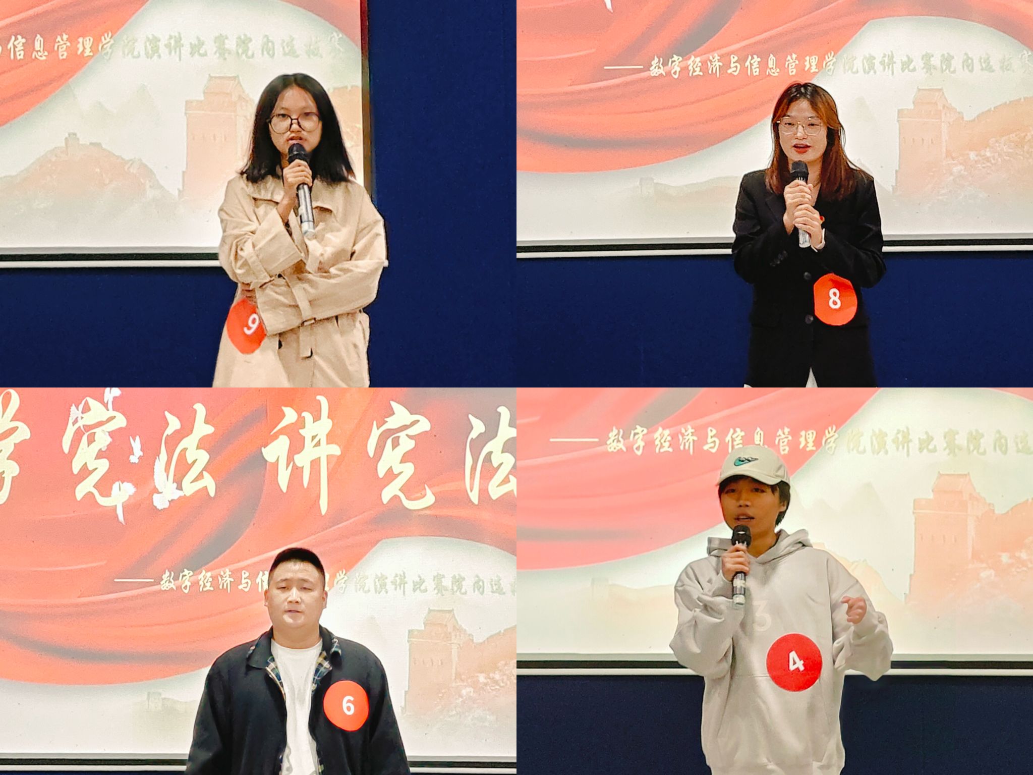 1、传承宪法精神,铸就法治辉煌——数字经济与信息管理学院“学宪法,讲宪法”演讲比赛院内选拔赛