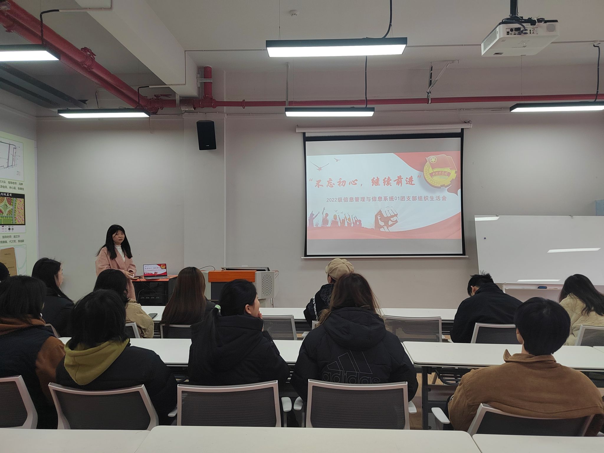 在春意盎然的季节里,为响应团组织要求,进一步激发团员青年的责任感与使命感,强化团组织凝聚力,数字经济与信息管理学院2022级信息管理与信息系统01团支部于2024年12月23日在玉堂书院扎堆朋辈交流空间成功举办了一场以“不忘初心,继续前进”为主题的组织生活会。本次会议内容丰富,形式多样,不仅让每位团员深刻回顾了入团时的初心与梦想,还为团支部未来的发展注入了新的活力。