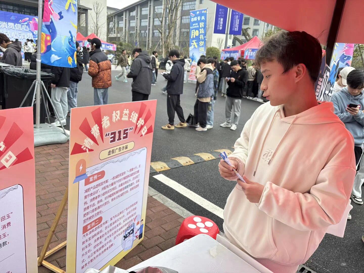 在本次“慧眼识真,不惧消费迷雾”—“3.15”消费者权益维护保护活动中,我们数字经济与信息管理学院团总支学生会权益女生部秉持“我为同学做实事”的理念,通过精心策划与组织,为同学们搭建了一个学习消费者权益保护知识的平台。活动以趣味游戏形式展开,同学们积极参与,踊跃互动。通过摇骰子选问题、回答问题、科普解答等环节,大家不仅学习到了实用的消费维权知识,还增强了辨别消费陷阱的能力。我们为每位参与者提供了盖章奖励,鼓励大家持续关注自身权益。此次活动有效提升了同学们的消费信心与维权意识,营造了健康和谐的校园消费环境,真正做到了为同学办实事、谋福利。