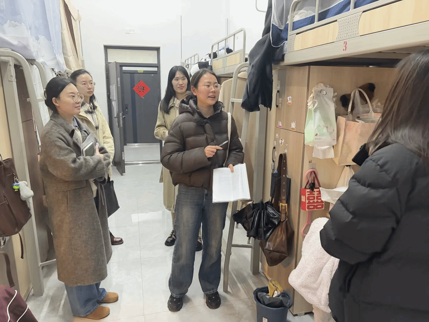 为营造良好的宿舍环境,保障同学们的安全与健康,本次查寝工作已圆满完成。通过定期巡查,我们对宿舍卫生、安全、纪律等情况进行了全面检查。过程中,同学们积极配合,大部分宿舍环境整洁、秩序井然,但也发现少数宿舍存在违规电器使用等问题,已及时提醒并督促整改。此次查寝不仅维护了宿舍安全,还增进了与同学们的沟通,为后续宿舍管理提供了宝贵经验,助力打造更加温馨、和谐的校园生活空间。在本次查寝活动中,学院领导与老师们深入宿舍,与同学们亲切交流,关心假期生活、返校适应情况及新学期学习计划,鼓励同学们树立新目标,以饱满热情投入学习,积极参与活动,提升综合素质,并强调了防诈骗的重要性。同时,全面检查宿舍卫生,重点查看通风、个人卫生习惯及物品摆放情况,督促同学们养成良好卫生习惯。通过此次活动,加强了师生交流,增强了同学们的卫生安全意识,为新学期的学习生活营造了安全、温暖、和谐的环境。