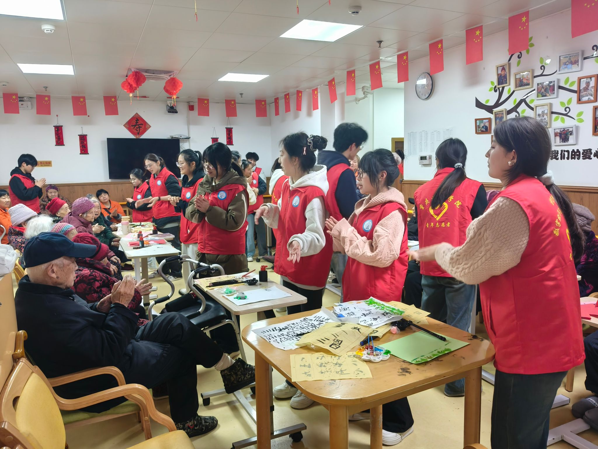 活动当日,志愿者们早早抵达养老院,布置活动场地。志愿者们统一身着志愿者红马甲,面带微笑,热情满满。活动伊始,志愿者代表亲切地向老人们详细介绍了活动主题和流程,并送上诚挚的问候与美好祝福,让老人们在活动开始前便感受到了浓浓的关怀。