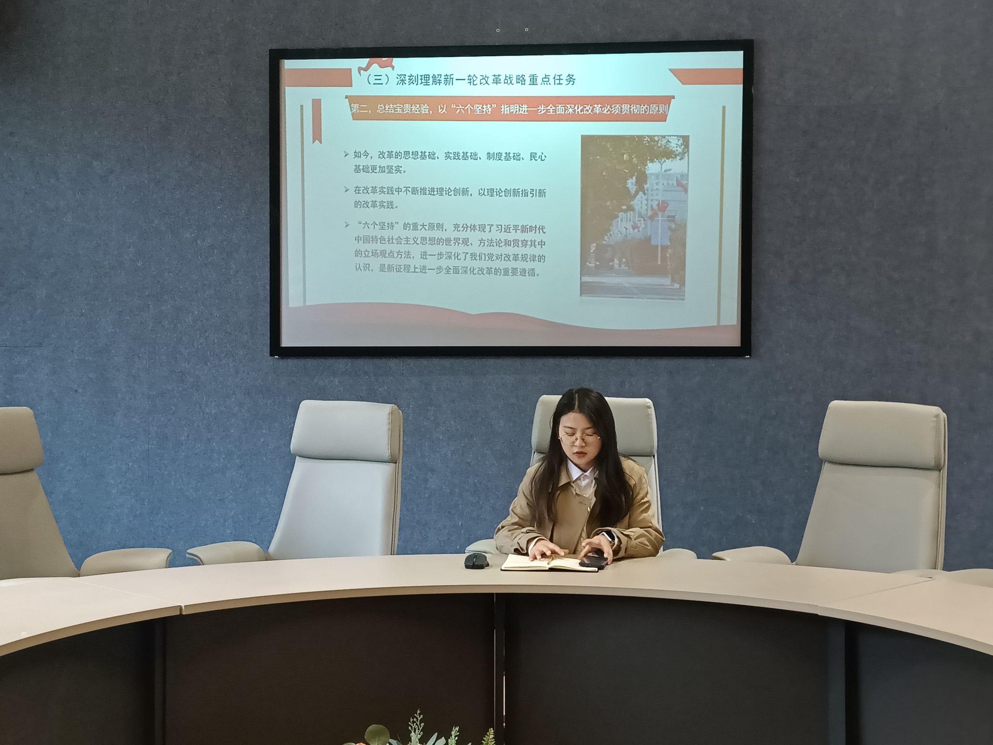 随后的交流研讨将此次会议推向高潮。党员同志们纷纷发言,分享学习感悟,碰撞思想火花。何东凌同志激情洋溢地表示:“全会精神如同一盏明灯,照亮了我前行的道路。作为青年党员,我将以更加坚定的信念,积极投身改革实践,为实现中华民族伟大复兴的中国梦添砖加瓦。”杨阳同志则以真挚的情感表达了自己的决心:“全会提出的改革举措,让我看到了国家发展的广阔前景。我将以满腔的热情,响应党的号召,用实际行动践行党员的初心与使命。”
