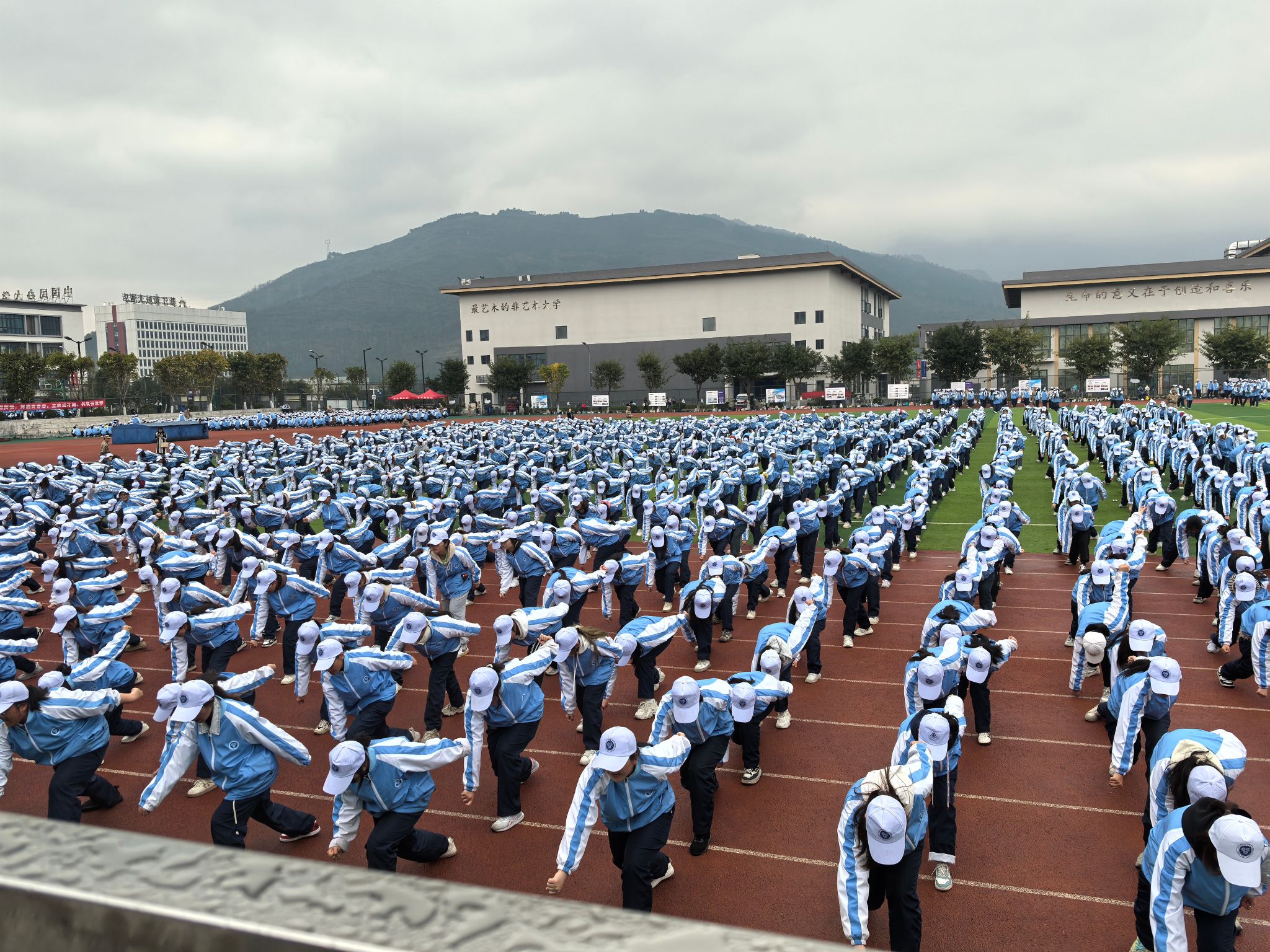 手势操方阵内,同学们的动作干净利落,一气呵成。她们的手臂挥舞间,如同灵动的飞鸟,划出优美而有力的弧线。眼神坚定自信,犹如夜空中闪烁的寒星,每一次目光交汇,都能传递出果敢与坚毅。