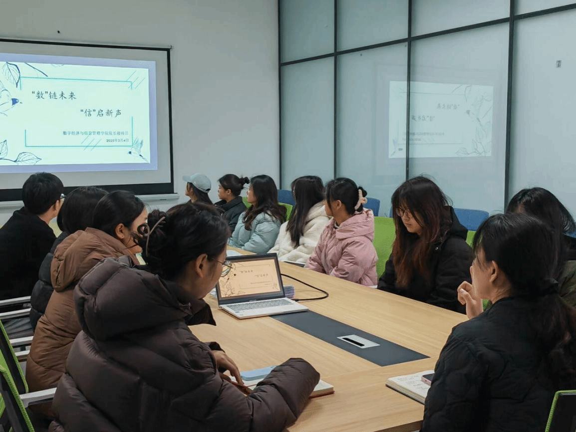 雨水初霁,紫藤垂露。2025年3月4日,数字经济与信息管理学院在仁者楼507成功举办了2024-2025学年第二学期第二周院长接待日活动。本次活动旨在深化院领导与师生之间的沟通与交流,共同探讨有关毕业及就业相关要求,为未来的学术与职业生涯绘制蓝图。此次会议有幸邀请到数字经济与信息管理学院学工副院长任瑞娟副教授,辅导员张倩老师作为出席嘉宾,2022级信息管理与信息系统1-2班学生代表参会。