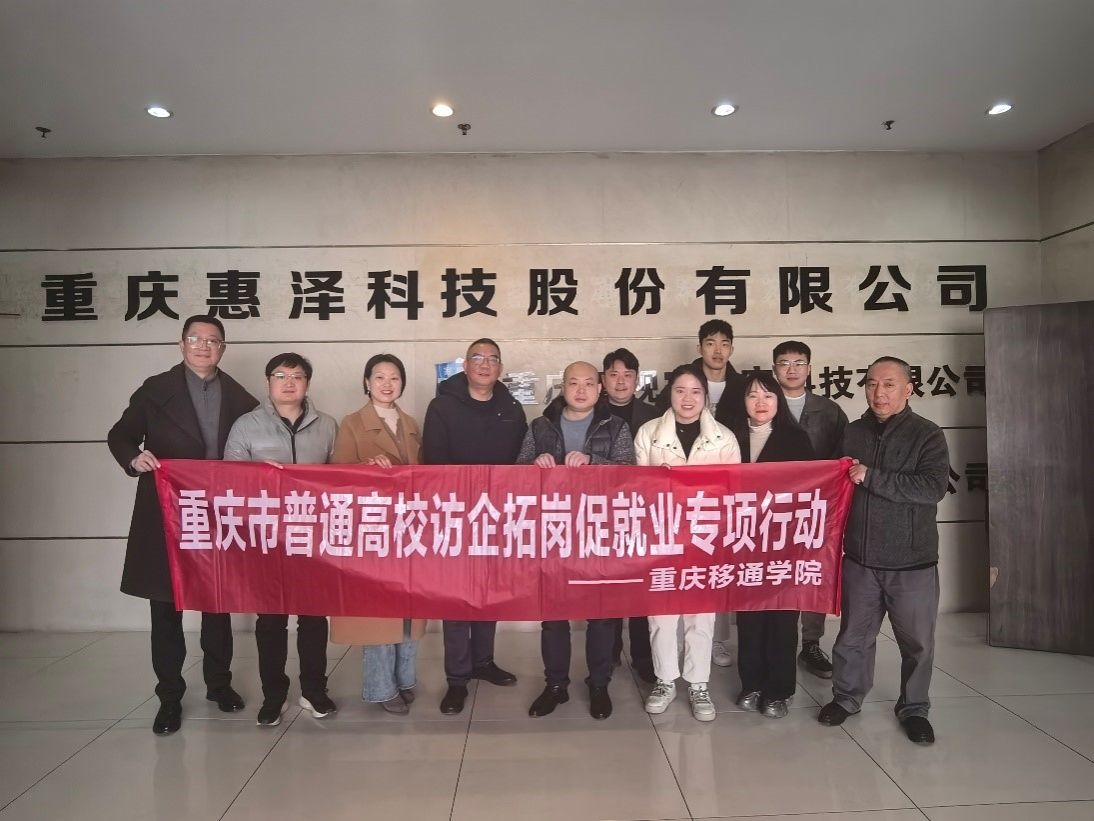 为贯彻落实《重庆移通学院关于开展书记校长访企拓岗促就业专项行动方案的通知》(移通〔2024〕98号)精神,根据“访企拓岗”促就业专项行动工作部署,深入了解企业需求,挖掘实习就业岗位,为毕业生争取更多就业机会,全力促进毕业生更加充分更高质量就业。2025年3月7日,重庆移通学院数字经济与信息管理学院院长刘贵容、大数据院长潘显兵带队,携同数信学院教学副院长王哲,工程管理教研室骨干教师王华、杨礼静,辅导员任超群、罗德康及优秀学生代表,前往重庆惠泽科技股份有限公司,开展了访企拓岗和调研交流活动。