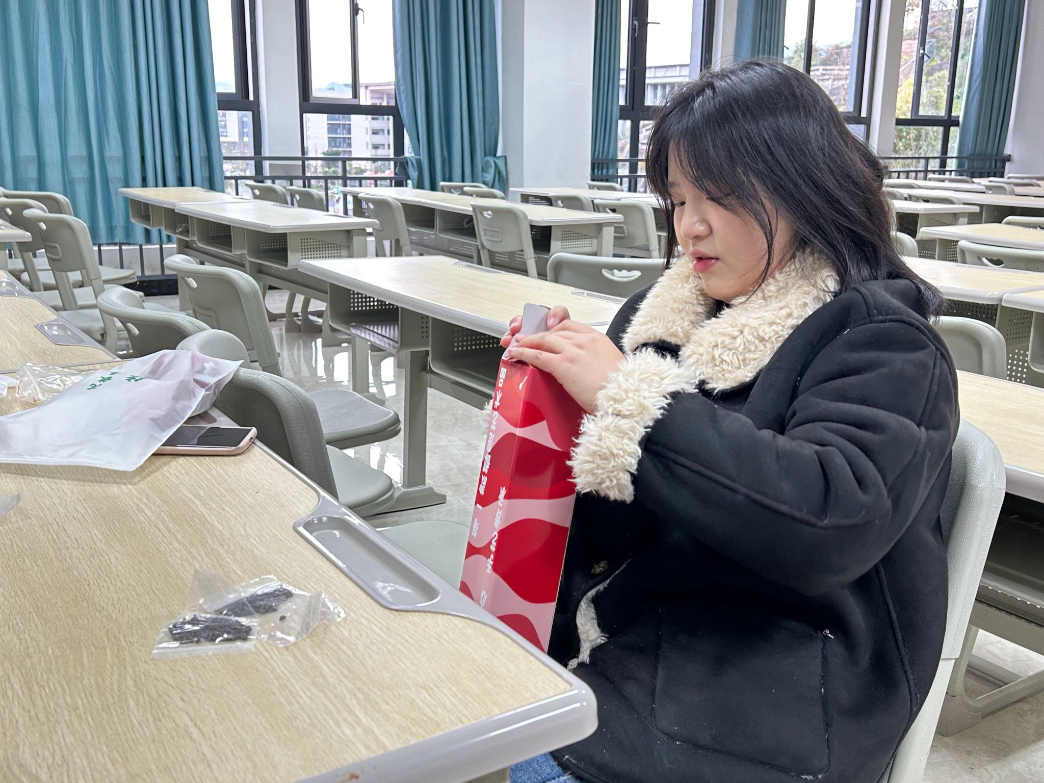 在3月7日妇女节主题活动仪式环节,学生代表将艾草锤与其他礼物共同献予在场教师。辅导员们轻敲养生锤试用后欣喜道:“手作的温度独一无二,这份融合中医智慧与传统技艺的礼物,让人感受到同学们传承文化的用心。”活动现场还设置体验区,志愿者现场演示艾草锤使用方法,引导教职工感受“敲经络、舒疲劳”的养生妙用,欢声笑语中更添温馨互动。