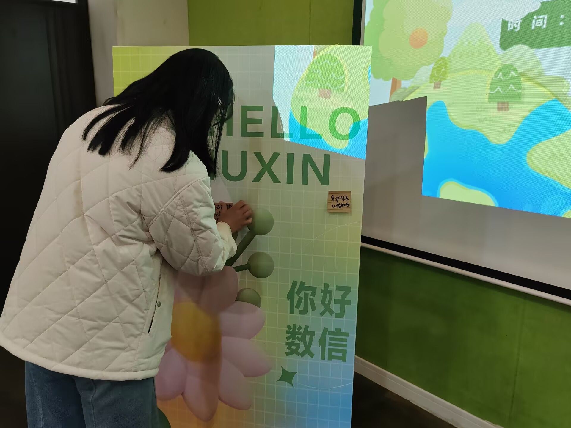 活动在充满仪式感的签到环节拉开帷幕,师生们纷纷拿起象征希望的绿色便签,写下对地球的美好期许。一句句真挚的话语,表达了大家对绿色未来的坚定承诺和对生态环境的深切关怀。随后,“植树知识小课堂” 精彩开讲。同学深入浅出地讲解着植树知识,分享树木吸收二氧化碳、改善生态环境的数据,让大家深刻认识到植树造林的重要意义,激发同学们种树护绿的热情。