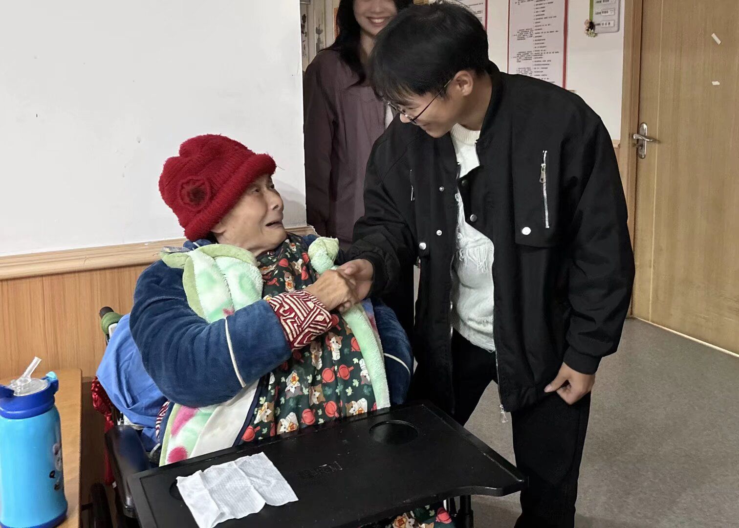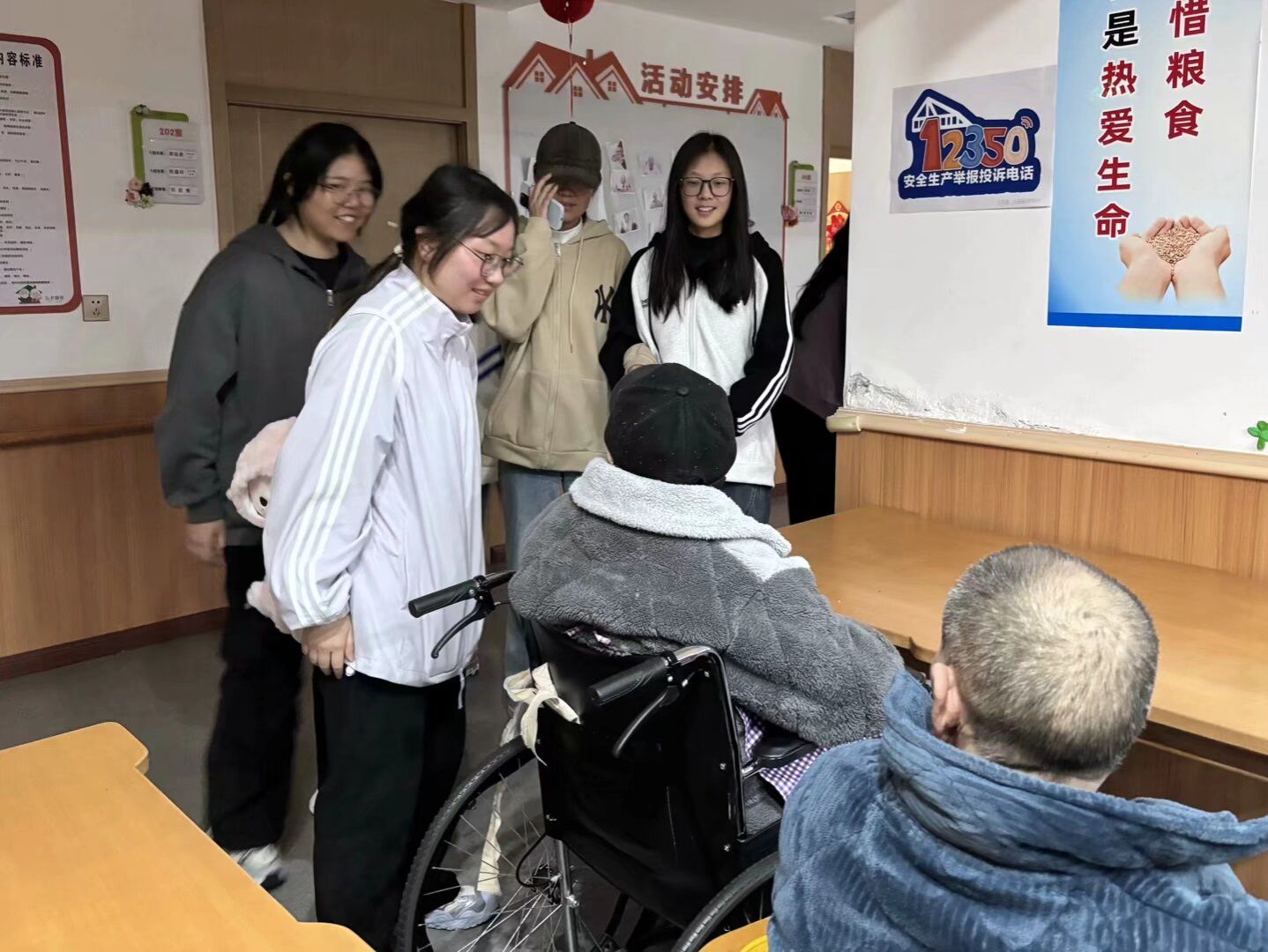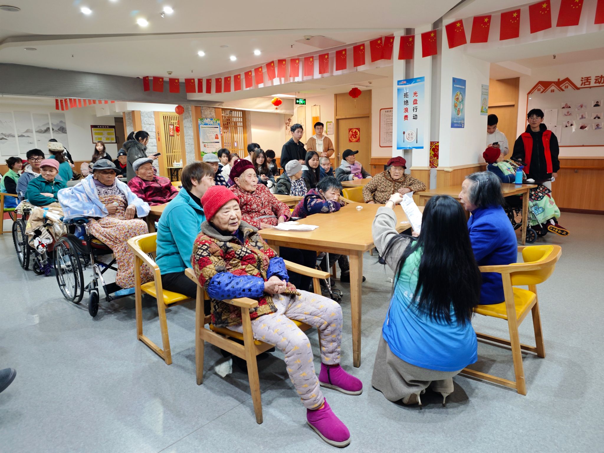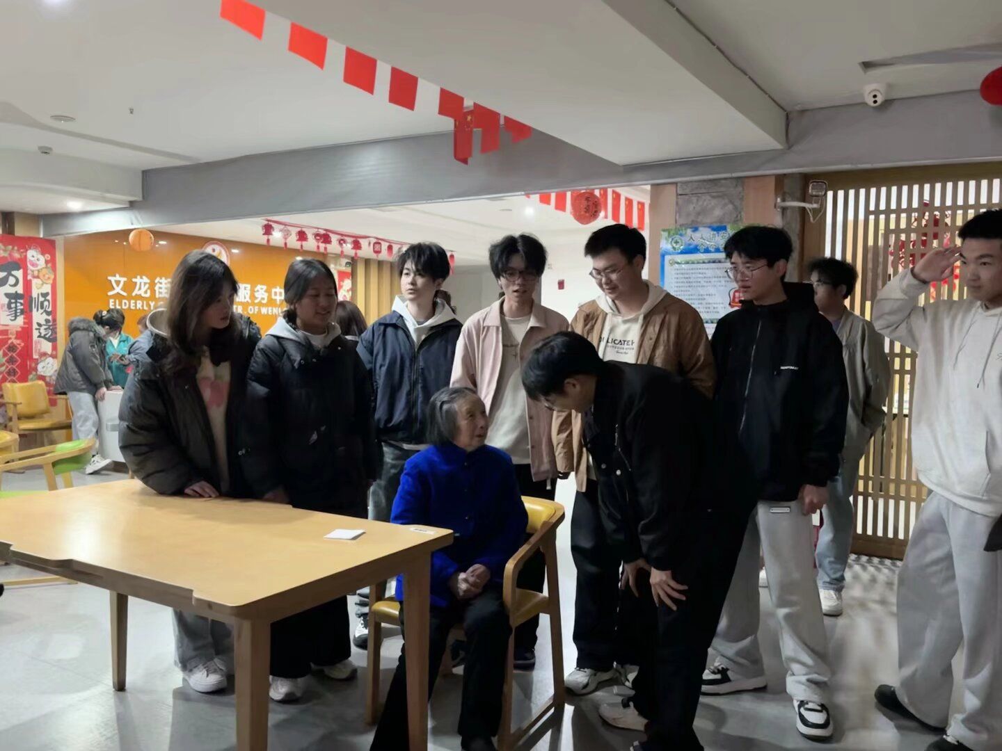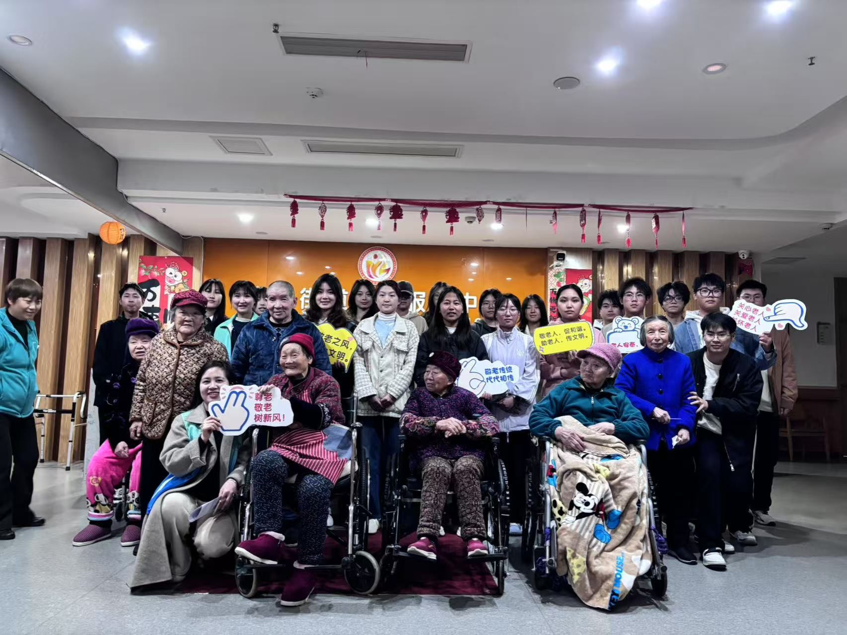 活动当天,同学们早早来到养老服务中心,受到了老人们的热烈欢迎。活动伊始,志愿者们带来精心准备的表演。活力四射的舞蹈、悠扬动听的歌声,还有充满趣味的小品,节目形式丰富多样,现场气氛十分热烈。老人们看得津津有味,脸上洋溢着幸福的笑容,掌声和欢笑声此起彼伏。这些精彩的表演不仅展示了同学们的才艺,更给老人们带来了欢乐和温暖。