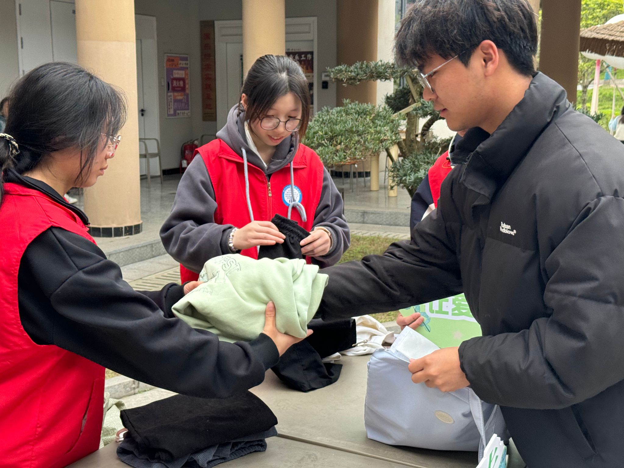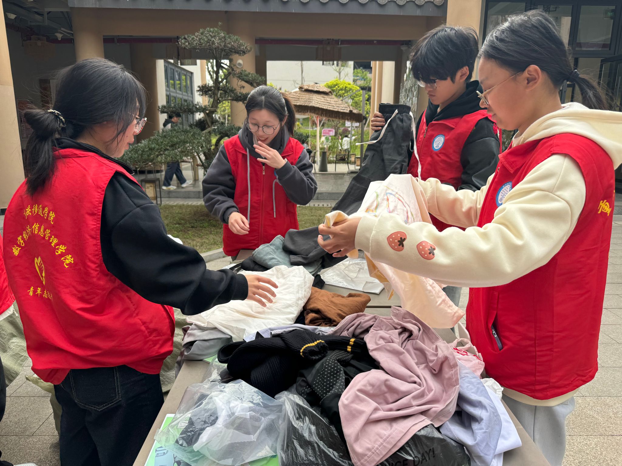 为响应国家“十四五”循环经济发展规划明确提出“完善废旧纺织品回收体系”,弘扬“奉献、友爱、互助、进步”的志愿精神,帮助贫困地区群众解决衣物短缺问题。2025年4月2日下午16:00至18:00,数字经济与信息管理学院青年者志愿者协会于观云书院中庭成功开展“奇妙物语·衣脉漂流计划”捐衣主题活动。