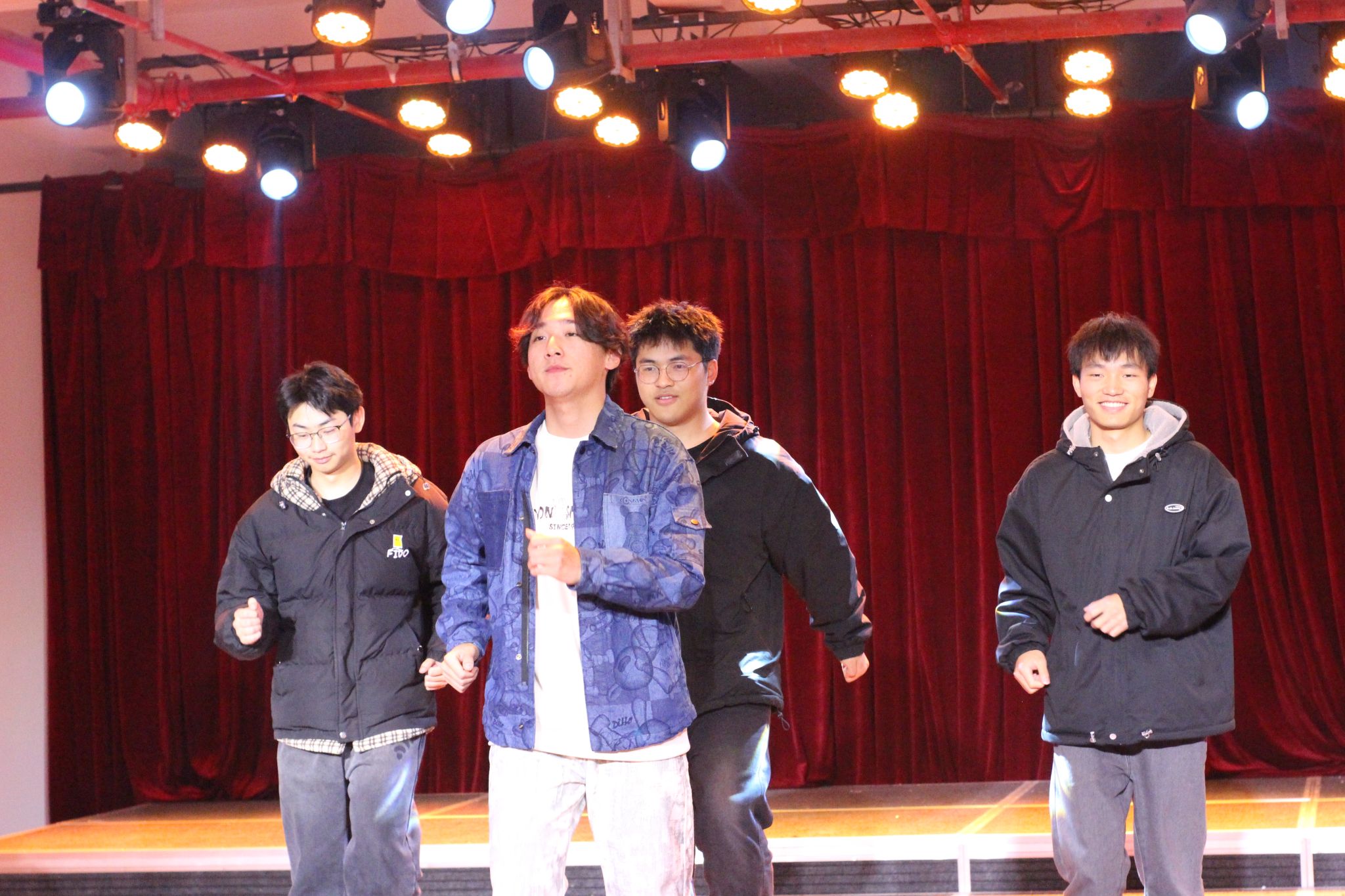 随后登场的"你说对不队"由四位男生组成,他们带来了一段活力四射的集体操表演。在动感十足的音乐伴奏下,舞者们以迅捷自信的舞步、充满力量的旋转和跳跃,完美展现了青年学子朝气蓬勃的精神面貌。这支洋溢着青春活力的舞蹈,不仅彰显了团队协作的魅力,更通过运动之美生动诠释了"健康"主题下的体魄之美。