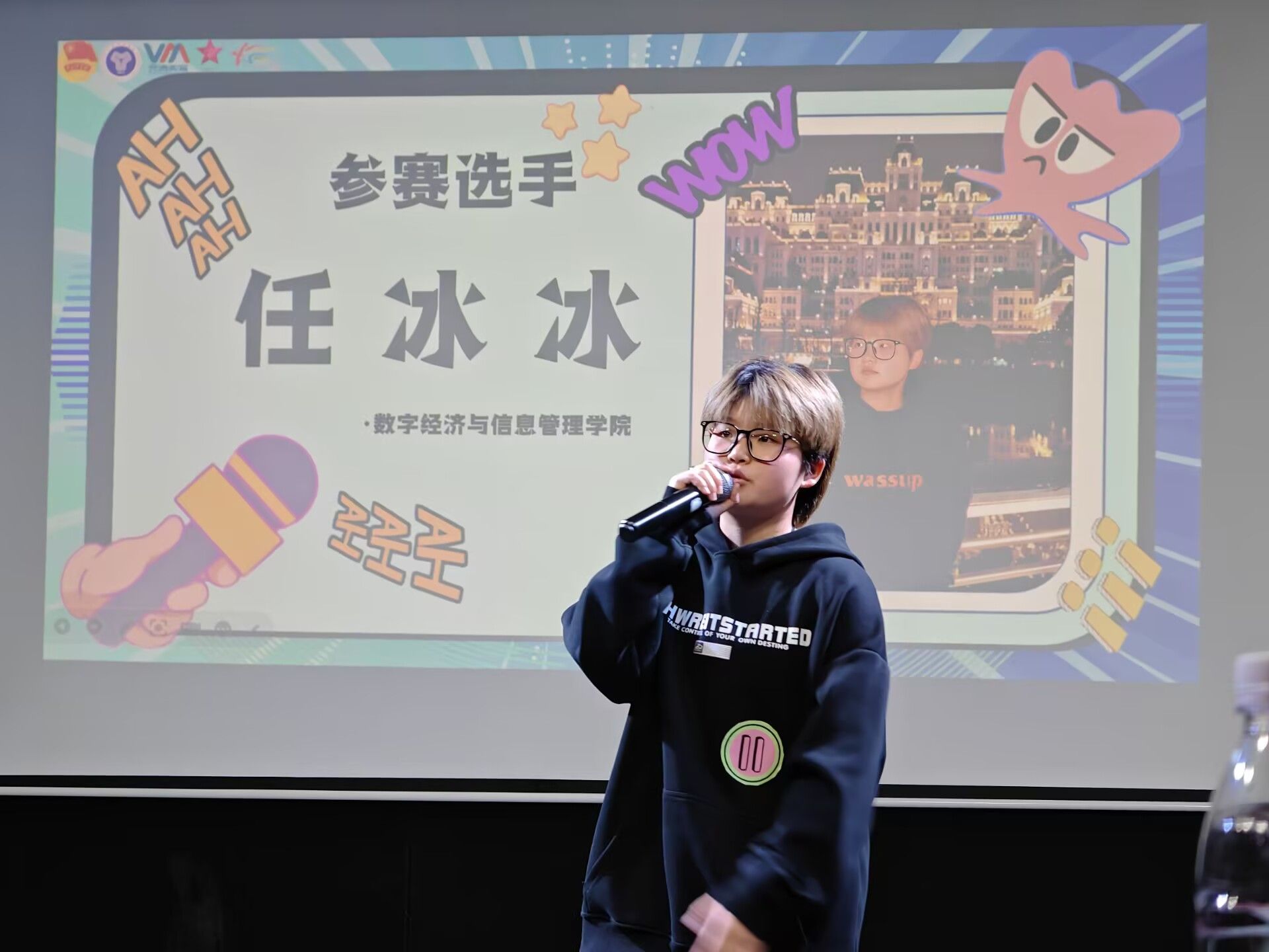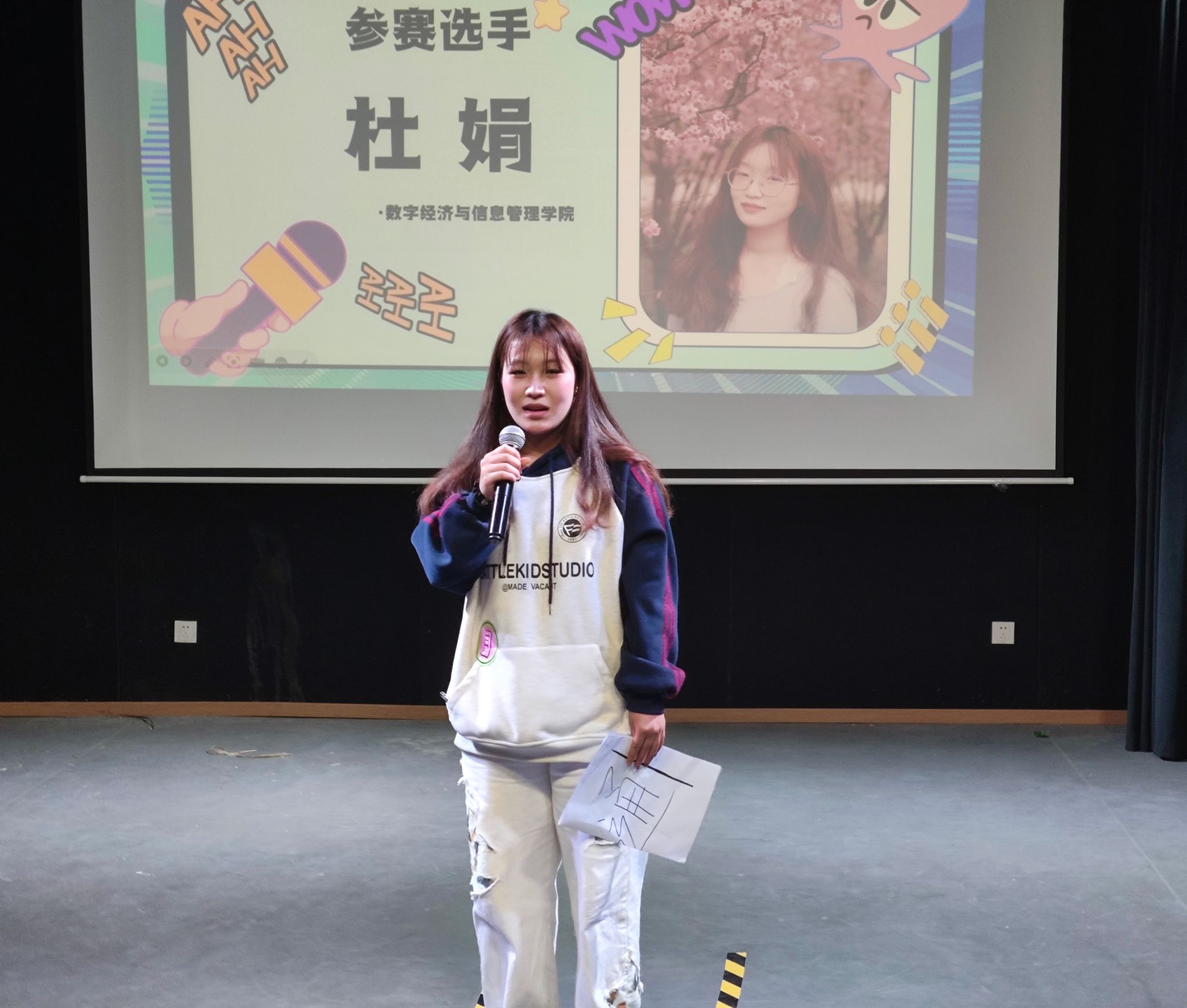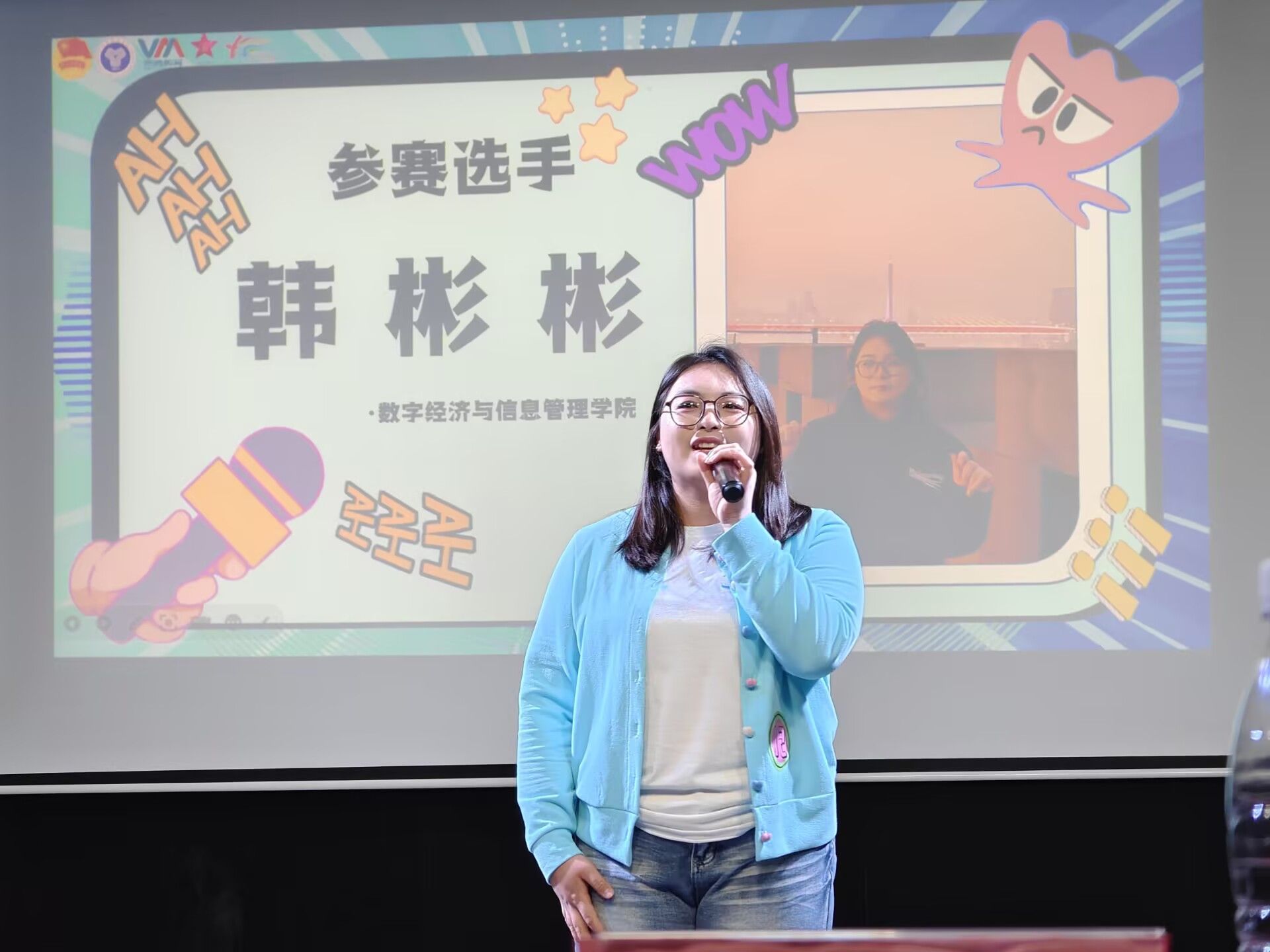 本次麦克秀复赛不仅为热爱语言艺术的同学们提供了展示自我的舞台,更展现了数字经济与信息管理学院学子蓬勃向上的精神风貌。选手们用智慧与幽默诠释青春,用语言与笑声传递正能量,为校园文化生活增添了一抹亮色。让我们共同期待韩彬彬同学能在决赛中带来更多惊喜,持续关注第三届麦克秀大赛的后续精彩赛况!