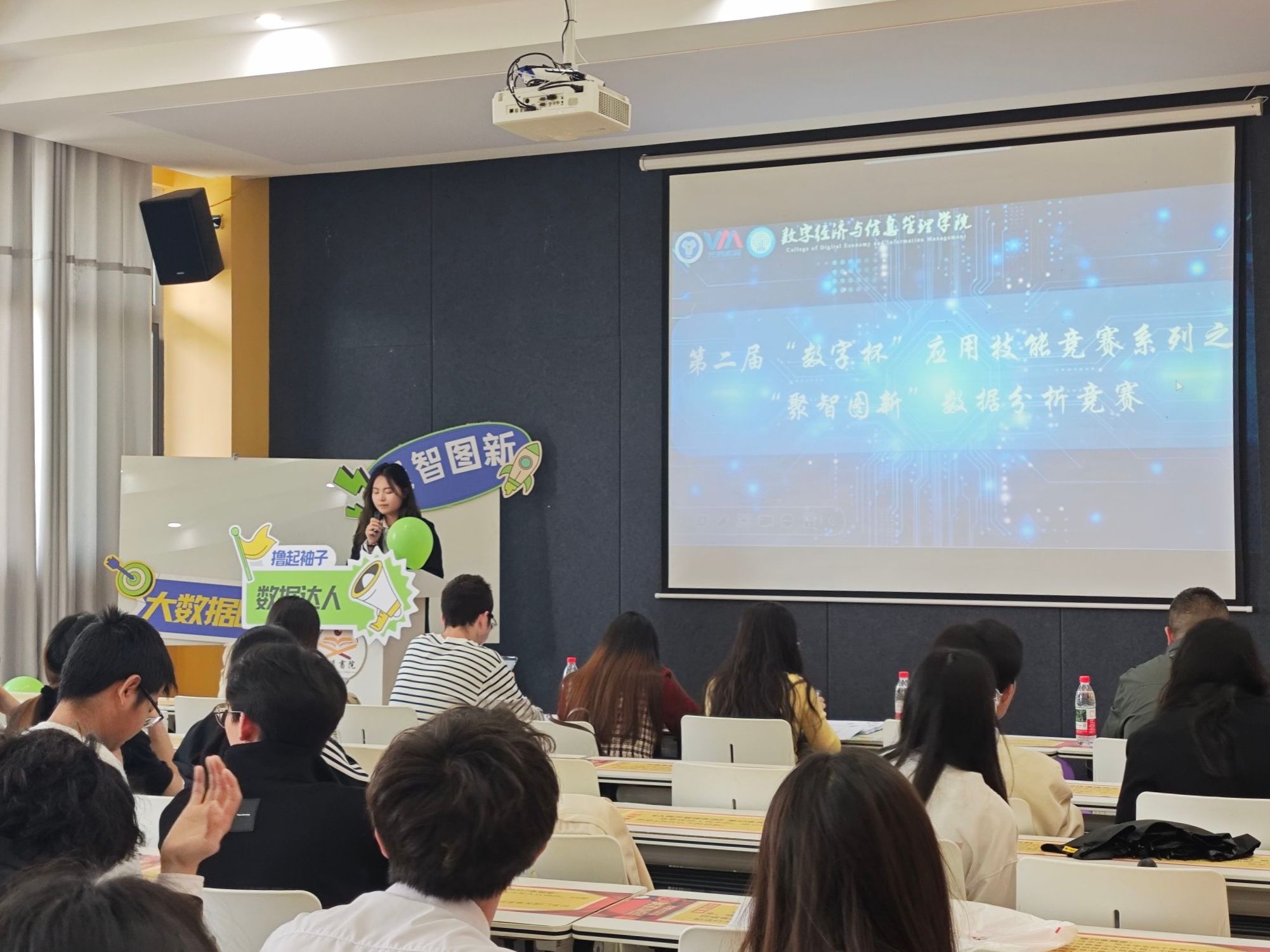 数据是驱动发展的关键要素,被誉为新时代的“石油”。在教学领域,它不仅重塑了知识获取与分析的模式,更对各专业人才的培养提出了新要求。掌握数据分析技能,成为大学生在专业道路上前行的必备能力。为加深学生对数据的认识,提高运用分析方法的能力,激发数据要素价值潜力,提高其专业认知水平与数据分析能力,数字经济与信息管理学院、数字经济协会与数字经济工作室于2025年4月9日下午14时,在瀛溪书院回声报告厅联合举办了第二届“数字杯”应用技能竞赛之“聚智图新”数据分析竞赛。