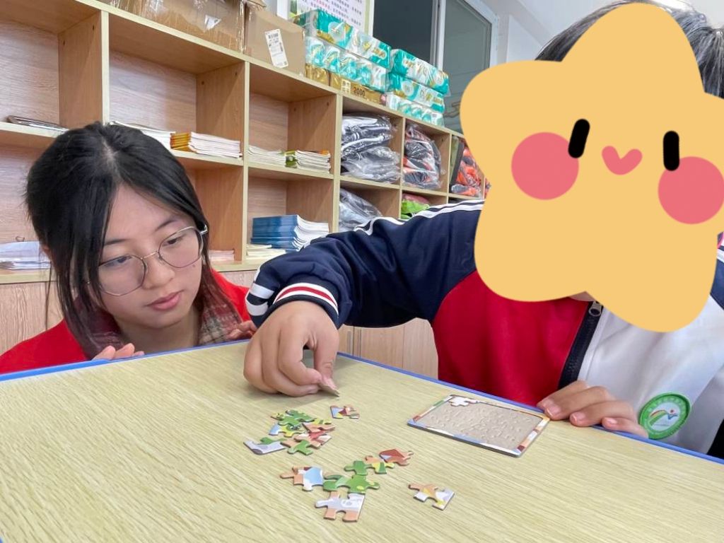 活动伊始,志愿者们准备了色彩鲜艳的卡通图案拼图。孩子们仔细分辨形状与颜色,将零散的碎片还原成完整的画面。拼图过程中,志愿者通过提问引导孩子们描述图案细节,锻炼其观察力与语言表达力。“这块蓝色的像天空,那块黄色的是太阳!”一名女孩边拼边分享,眼中闪烁着成就感。