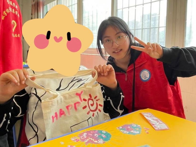活动尾声,志愿者们为孩子们送上了特殊奖品——“听星语、护心愿,让爱无碍”活动中大学生亲手绘制的爱心帆布袋,并附上精心准备的小零食。孩子们捧着色彩缤纷的帆布袋爱不释手,并表示也要将自己的画作送给志愿者哥哥姐姐。后续,孩子们的拼图与绘画作品将通过学院官方平台展出,让更多人看见“星星”的光芒。