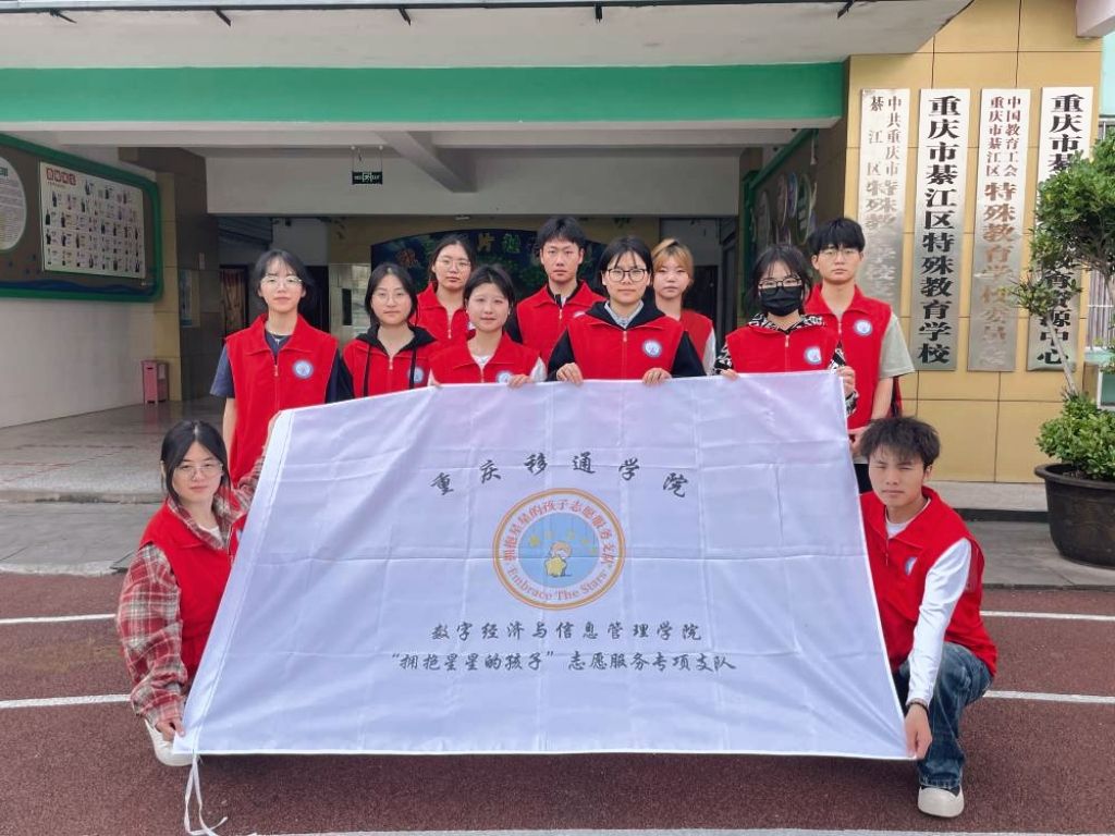 2025年4月9日,重庆市綦江区特殊教育学校内洋溢着欢声笑语,一场以“梦想‘星’绘,拼图启智之旅”为主题的志愿服务活动在此温情上演。本次活动由数字经济与信息管理学院“拥抱星星的孩子”志愿服务专项支队主办,延续“4.2世界自闭症日”校园倡导行动的公益精神,通过趣味拼图与创意绘画相结合的形式,助力“星星的孩子”展现潜能、感受关爱。活动中,孩子们在课间表演的手势舞《感谢有你》深深打动了志愿者,而满载心意的“听星语、护心愿,让爱无碍”活动中大学生亲手制作的爱心帆布袋与小零食更将温暖传递至每个角落。