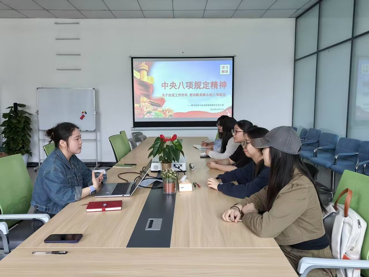 为深入贯彻党的纪律要求,强化党员廉洁自律意识,党员同志们于2025年4月10日15:40齐聚在仁者楼507教室,党支部书记任超群同志组织了一场以“深入学习八项规定,践行廉洁自律准则”为主题的专题学习会,为全体党员详细解读了八项规定,引导党员们深刻领会其精神实质,切实增强党性修养。