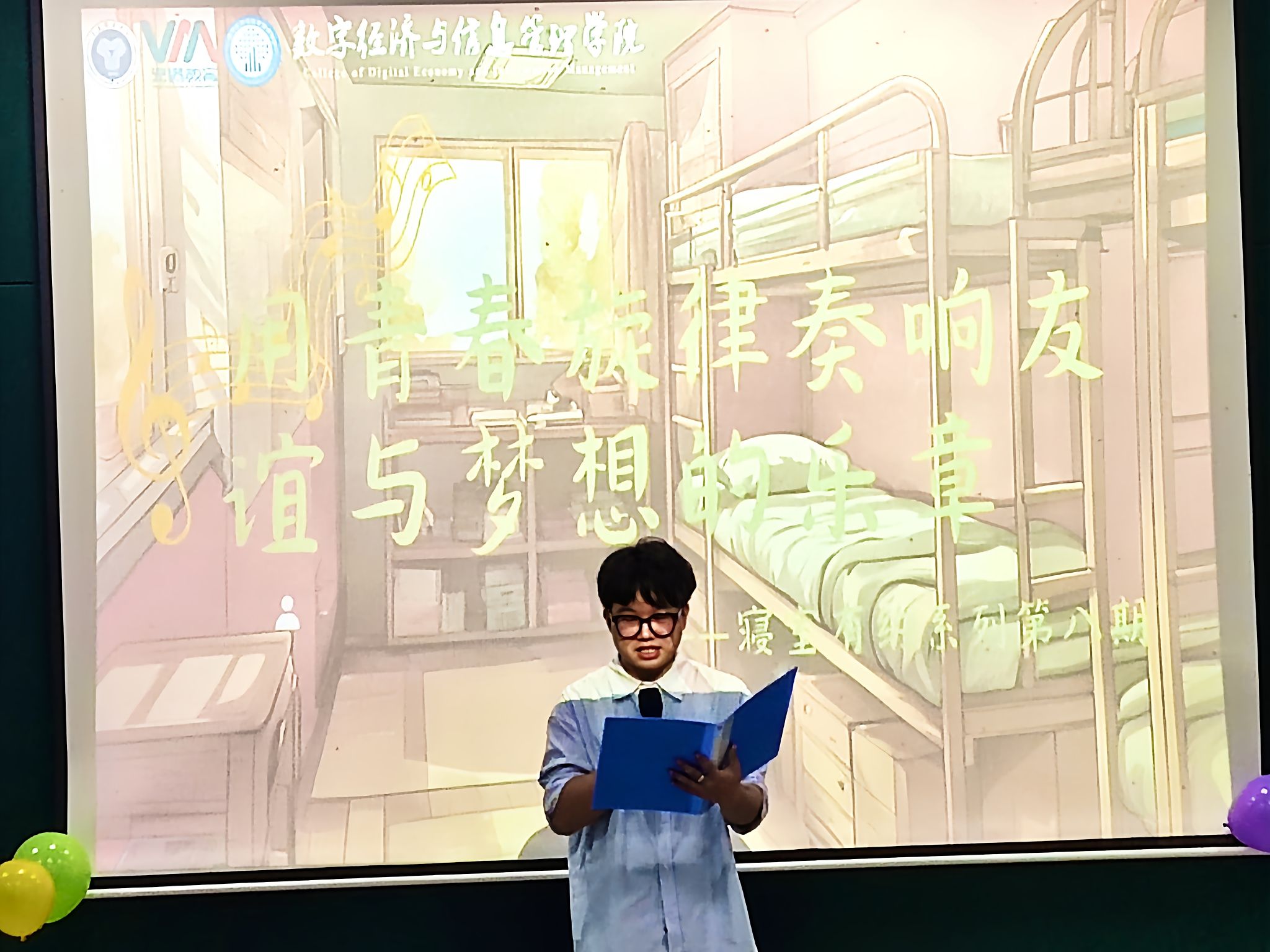 通过宿舍文化的交流与互动,增进同学之间的友谊,提升自我认知,丰富校园文化生活,进一步营造和谐、积极的宿舍氛围,让同学们在大学生活中感受到家的温暖与力量。数字经济与信息管理学院于4月11日15:30在綦河书院星云·影音室举办了“室梦微澜,青春漫谈”寝室有约访谈系列第八期。本次活动有幸邀请到了社团版块指导老师张倩作为嘉宾出席。