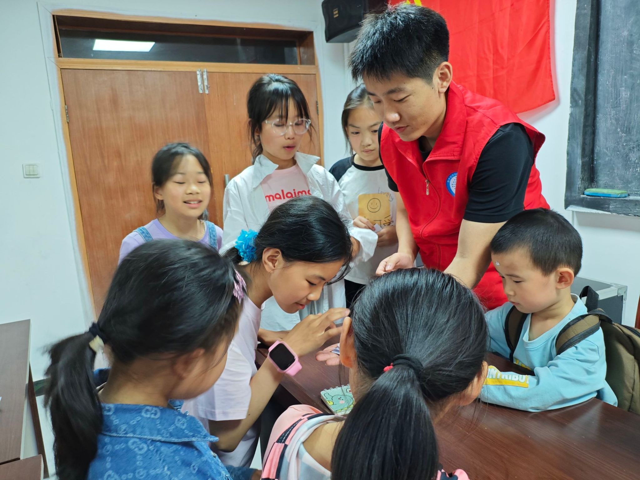 在数学辅导环节,面对整数运算、简单图形认识这类基础知识点,志愿者们巧妙借助生活实例,让抽象的数学概念变得生动有趣。在语文学习上,志愿者耐心陪伴孩子们朗读课文,逐字逐句纠正发音和错别字。对于造句和写作文这些难题,志愿者会启发孩子们回忆生活中的趣事,打开他们的写作思路。英语辅导则从最基础的26个字母书写、简单单词背诵开始,志愿者通过播放欢快的英文儿歌、玩单词卡片游戏,让孩子们在轻松愉悦的氛围中掌握知识。遇到理解能力稍弱的孩子,志愿者们始终保持十足的耐心,反复举例、多次示范,直到孩子完全领会。
