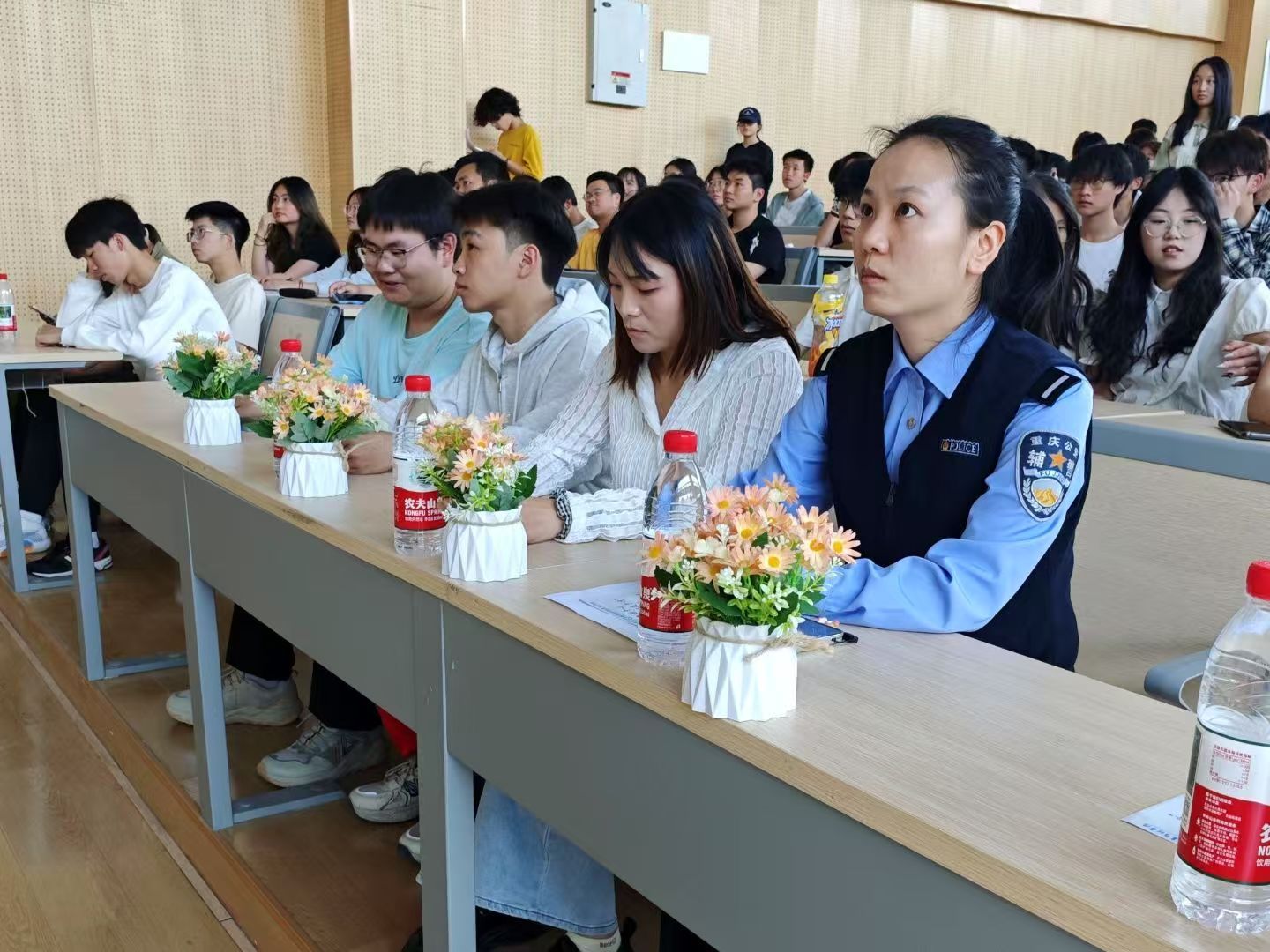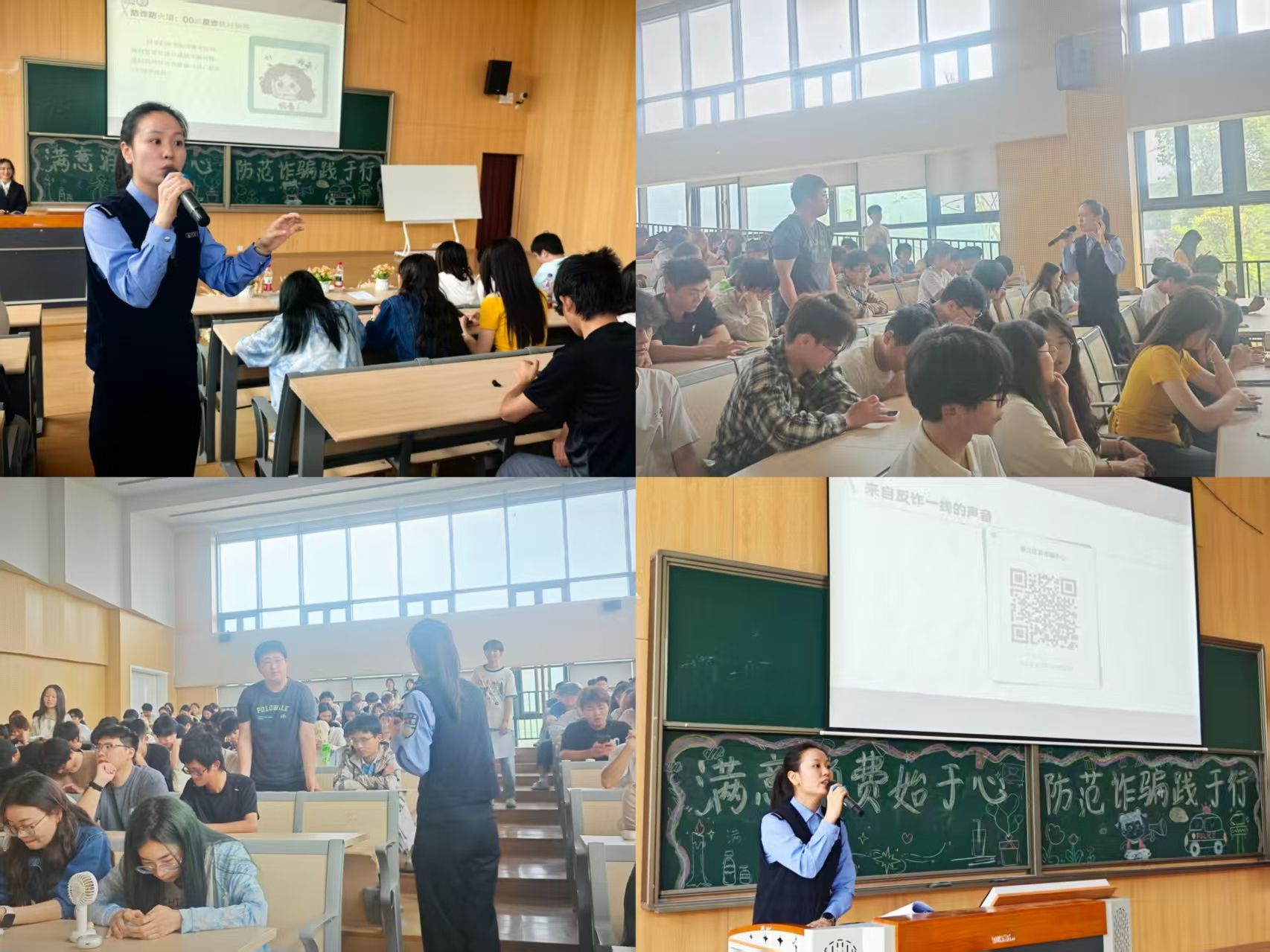 綦江区公安局反诈中心宣传员周纯真警官受邀出席并作专题警示教育讲话,周警官凭借多年扎根反诈一线积累的丰富经验,用通俗易懂的语言、生动鲜活的案例,为同学们层层解码诈骗的100种“包装术”。从常见的“冒充公检法”诈骗,骗子伪装成执法人员,利用同学们对法律权威的敬畏心理实施诈骗;到“网络购物诈骗”,以虚假优惠、退款陷阱等手段骗取钱财;再到“兼职刷单骗局”,用轻松赚取高额报酬的幌子吸引同学们上钩。周警官对每一种诈骗手段的特点、行骗方式及背后的心理学原理都进行细致剖析,让同学们对电信网络诈骗的复杂性和隐蔽性有更为清晰的认识,切实提升大家防范电信网络诈骗的意识。活动特邀綦江区公安局反诈中心周纯真警官带来硬核反诈课堂。周警官凭借多年一线实战经验,化身“反诈解码人”,用生动案例和通俗语言,层层揭开电信网络诈骗的100种“包装术”。从“冒充公检法”利用权威恐慌制造的心理操控,到“网络购物”以虚假优惠设下的退款陷阱,再到“兼职刷单”用蝇头小利编织的甜蜜骗局,每一种诈骗手段的运作逻辑、心理诱因和防范要点,都在周警官的细致拆解下无所遁形。
