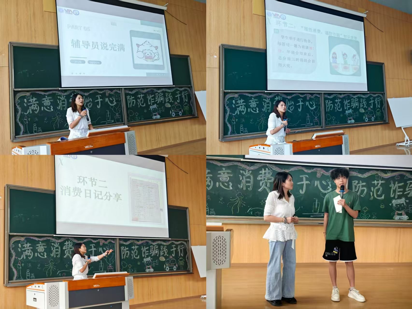 当相机快门声响起,全体师生与周纯真警官的笑容定格成守护校园安全的生动注脚。这场融合创意体验、实战演练与深度教育的主题年级会,不仅让“满意消费”的理念浸润心田,更让反诈意识转化为可操作的行动指南。同学们纷纷表示,将以此次活动为起点,让节俭意识成为生活习惯,让反诈技能化作本能反应,共同绘就校园理性消费、安全防护的美好画卷。