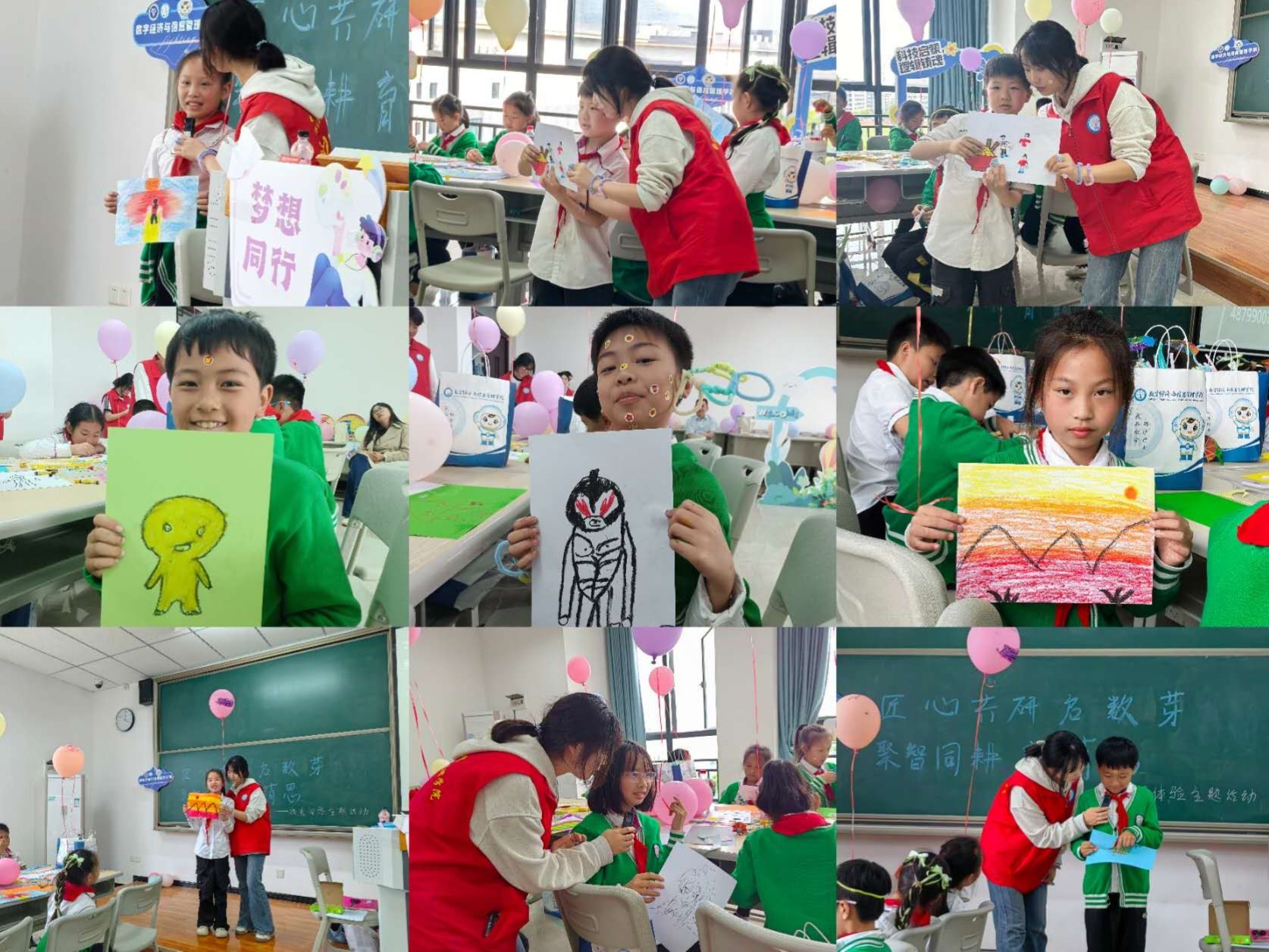 活动以“非遗传承+体能挑战+数字交互”三维架构,让环保宣言从棉麻拓印、彩色手印延伸至云端数字绿洲,实现美育浸润、行为引导与科技赋能的完满融合,真正践行“知行合一”的生态教育范式。活动尾声,小朋友们在仁者楼教室用绘画复盘研学收获。他们用五彩的画笔,描绘出在校园里的所见所感,之后还积极上台分享自己的画作,讲述画作背后的故事。