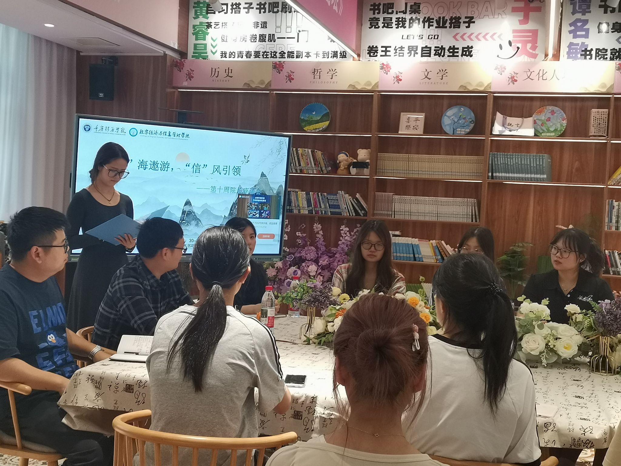为搭建起学院与学生之间的沟通桥梁,进一步促进师生交流,数字经济与信息管理学院于2025年4月28日下午16:30,在观云书院华文书吧举办了以“‘数’海遨游,‘信’风引领”为主题的第十周院长接待日活动。此次院长接待日有幸邀请了教学副院长王哲副教授、供应链管理教研室骨干教师代表陈泰岳老师以及辅导员张静老师,2023级供应链管理专业学生代表参加。