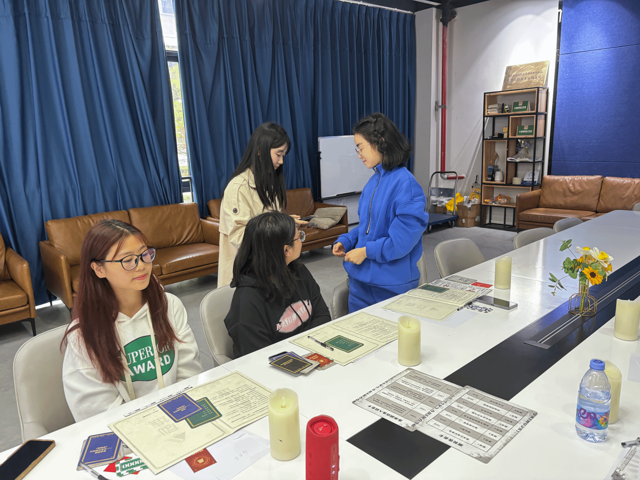 活动现场,由云端剧本杀学院专业DM带领同学分组体验剧情,每组6人,时长约2小时。通过提供身份卡、线索卡等简单道具,参与者们化身为剧本中的角色,置身于精心构建的虚拟诈骗情境之中。随着剧情推进,一个个充满迷惑性的诈骗陷阱逐渐浮出水面,从常见的冒充公检法诈骗,到新型的网络投资诈骗,参与者们需凭借智慧和团队协作,抽丝剥茧寻找线索、分析真相,在沉浸式体验中感受诈骗分子的狡猾与诈骗手段的多样性。