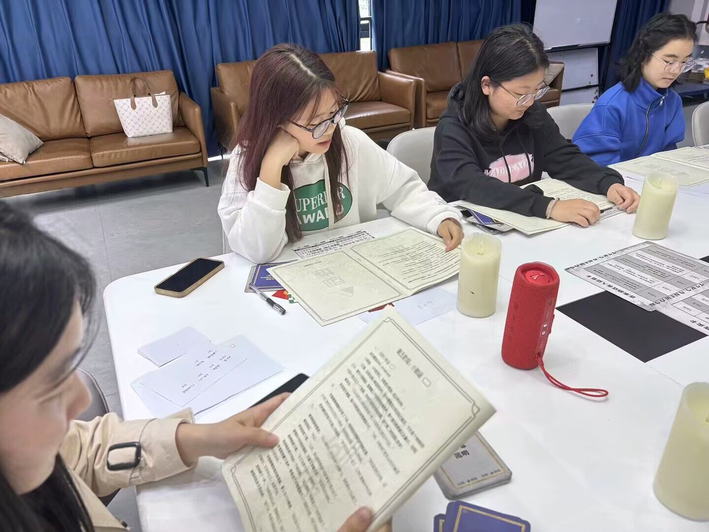 为提升学生的反诈意识与防范能力,积极构建安全和谐的校园环境。数字经济与信息管理学院和云端剧本杀学院于2025年4月25日14:30在綦河书院二号楼励行·.会客厅联合举办“来电:沉浸式入局,解锁诈骗风云”剧本杀活动。此次活动创新采用沉浸式剧本杀形式,将反诈知识巧妙融入其中。活动选用《来电1》反诈主题剧本——内容为宋重德等六人授受害者家属的委托,和警方合力捣毁了柬埔塞的窝点,将受害者从柬埔寨中解救出来的故事。