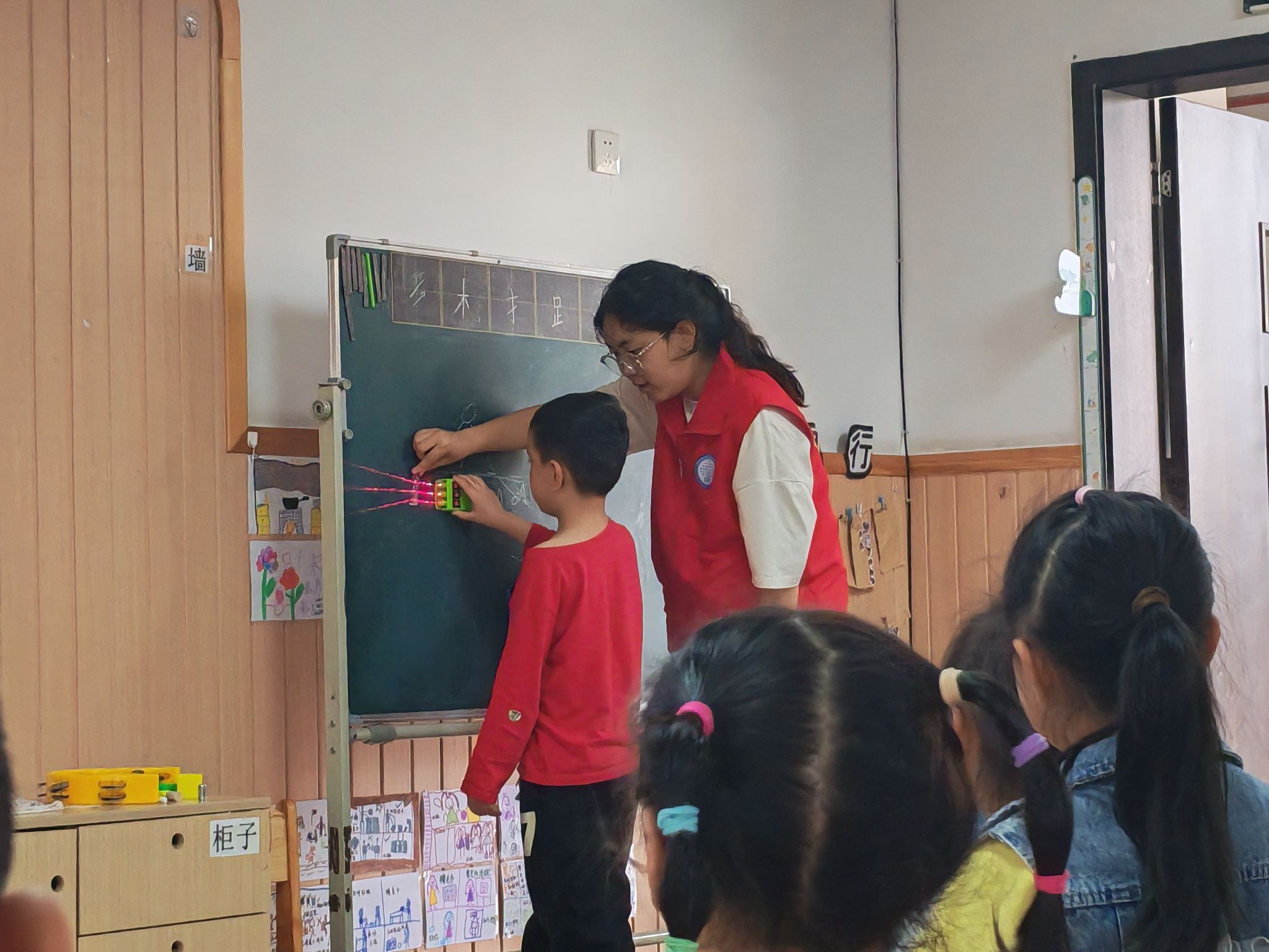 2025年4月25日15时,为激发幼儿科学兴趣,播撒探索精神的种子,“彩虹七巧”志愿服务支队走进綦江区实验幼儿园,开展“趣玩物理,点亮童梦”物理知识科普主题科普活动。通过“沉与浮”“光的折射”“创造彩虹”等趣味实验,志愿者们带领小朋友了解体验物理的奥秘,活动现场欢声不断,科学的火花在童心中绽放。