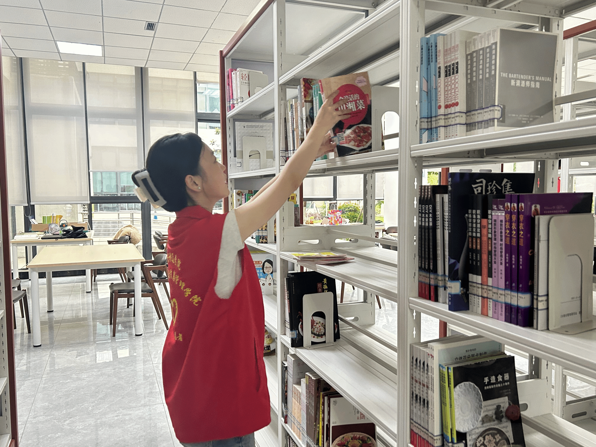 培训结束后,志愿者们迅速投入到工作中。他们分工明确,有的负责将新到的书籍进行分类,有的穿梭在书架间,将错放的书籍重新归位,还有的则仔细检查书籍的破损情况,并做好记录。在分类区域,志愿者们小心翼翼地拆开书籍包装,认真核对书籍信息,按照学科分类将其整理成一摞摞整齐的书堆。穿梭在书架间的志愿者们,凭借着培训中学到的知识,迅速发现那些“迷路”的书籍,并将它们送回正确的位置。