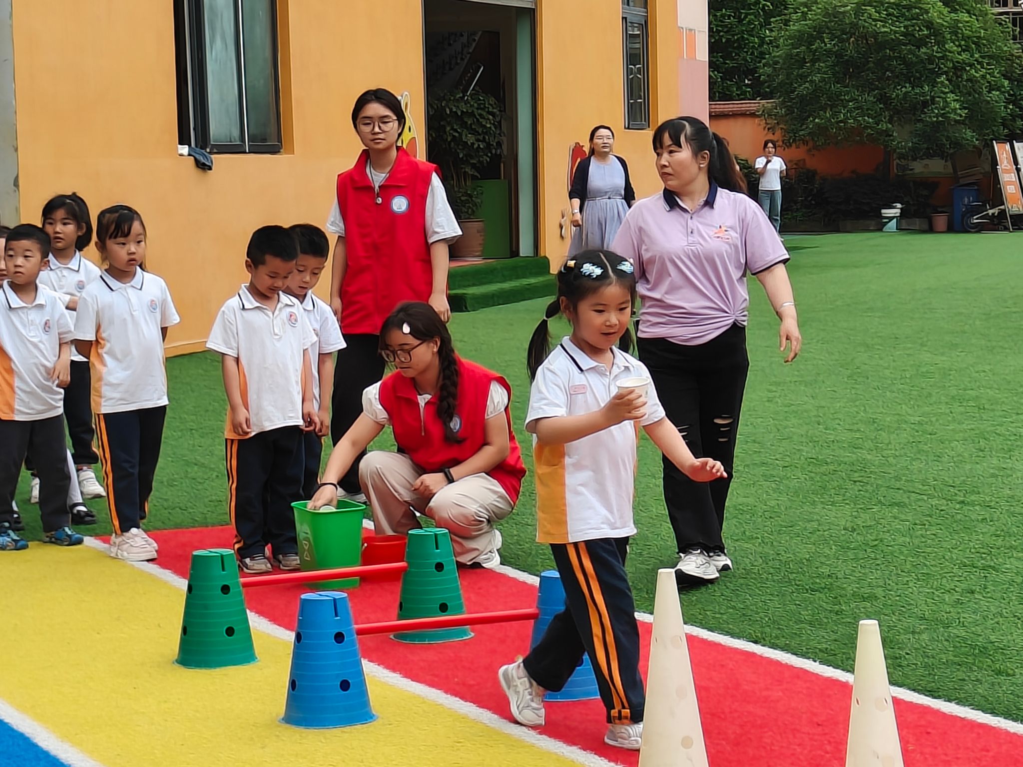 如果说分类赛是脑力挑战,那么“水滴保卫赛”则是对体力和耐心的双重考验。孩子们手持盛满水的纸杯,在“障碍迷宫”中迂回前行,既要保持平衡避免洒水,又要争分夺秒完成任务。