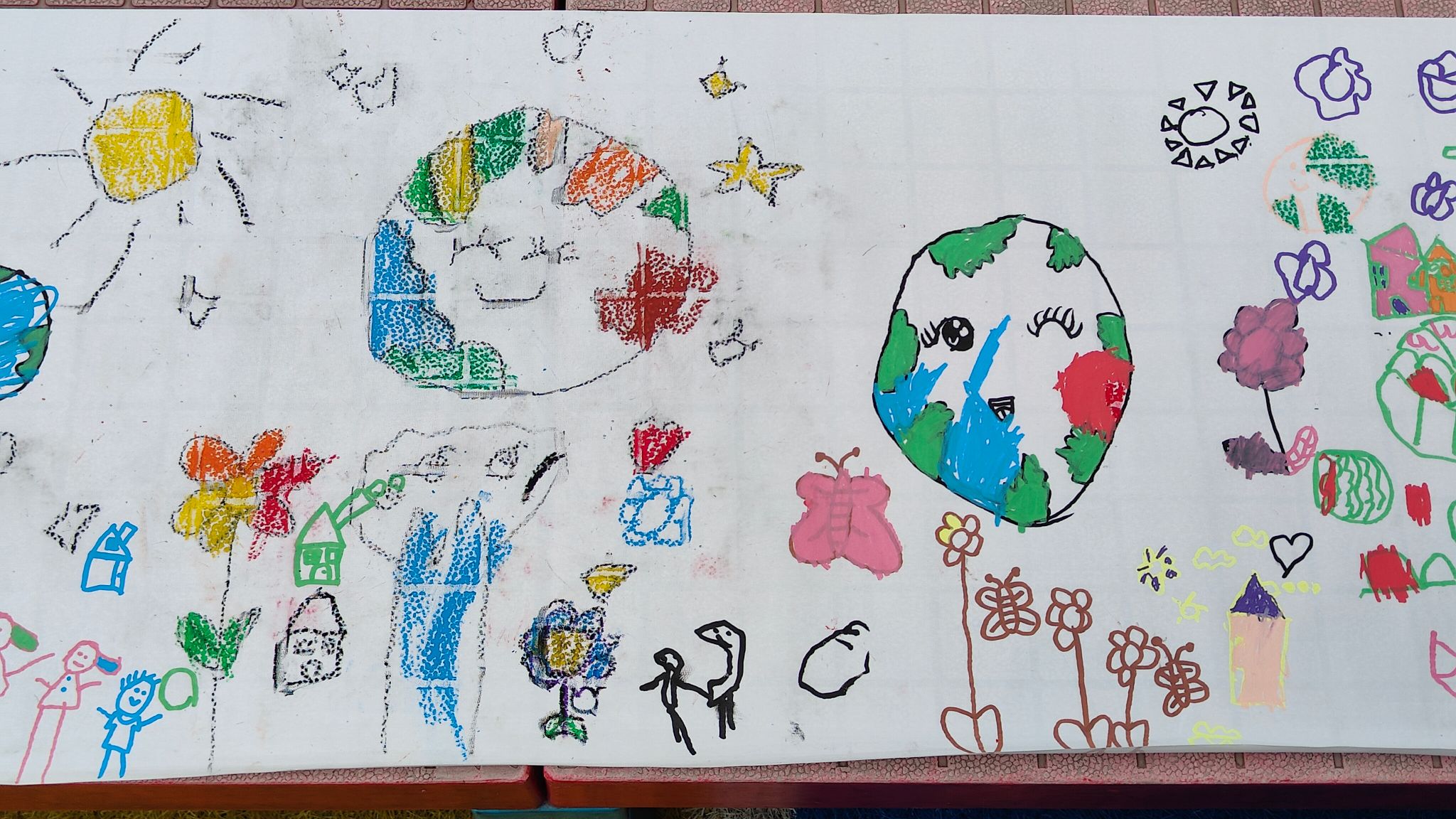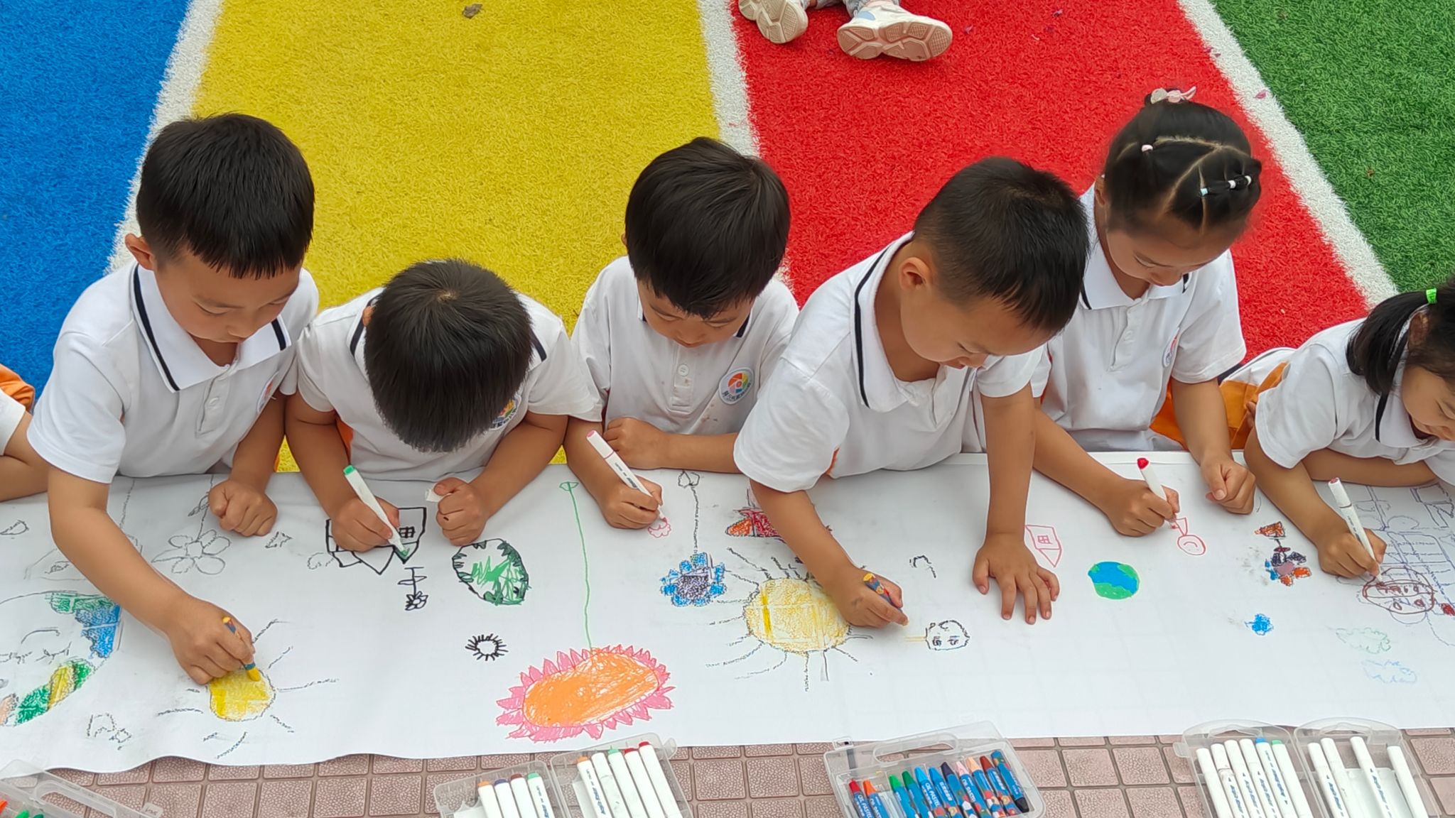 在“地球长卷”绘制环节,孩子们化身“环保小画家”,用彩笔勾勒心中的绿色家园。有人画下蓝天白云下牵手种树的小朋友,有人画下美丽的未来,更有孩子将游戏中的“垃圾大树”改造成开满花朵的智慧树。